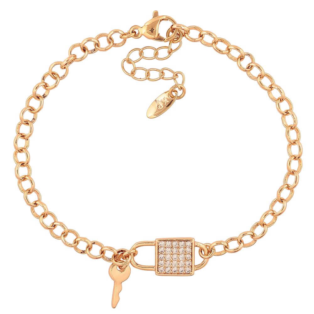 Браслет Xuping колір Позолота 18K "Ланцюжок із вставкою замочок і ключик" розмір з дод. ланцюжком 17-20см х 4-8мм
