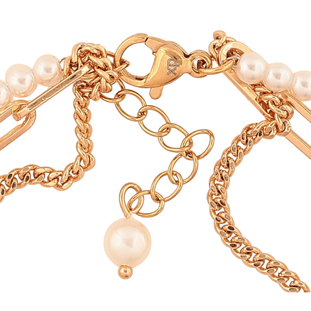 Браслет Xuping колір Позолота 18K "Потрійний ланцюжок з перлинами та підвісками" розмір з дод. ланцюжком 19-22см х 9мм