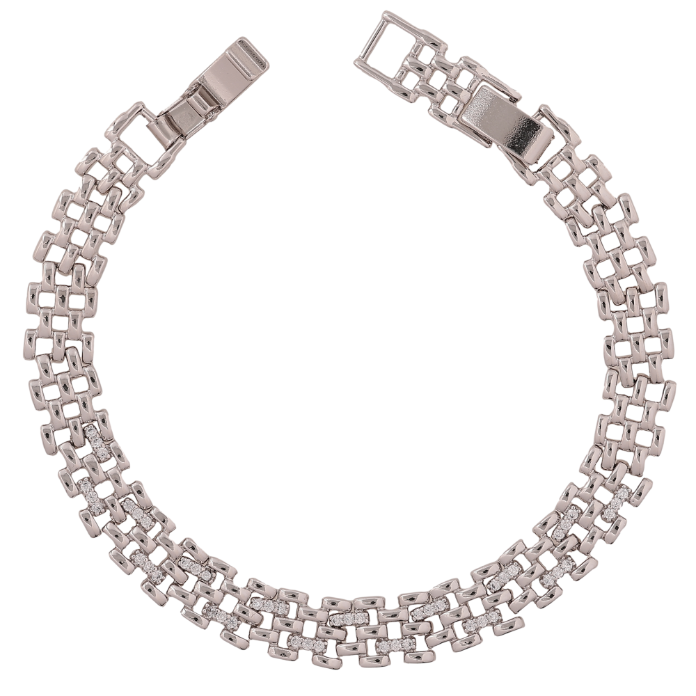 Браслет Xuping колір Родій "Декоративне плетіння з кристалами" довжина з дод. замком 17,19см х 8мм