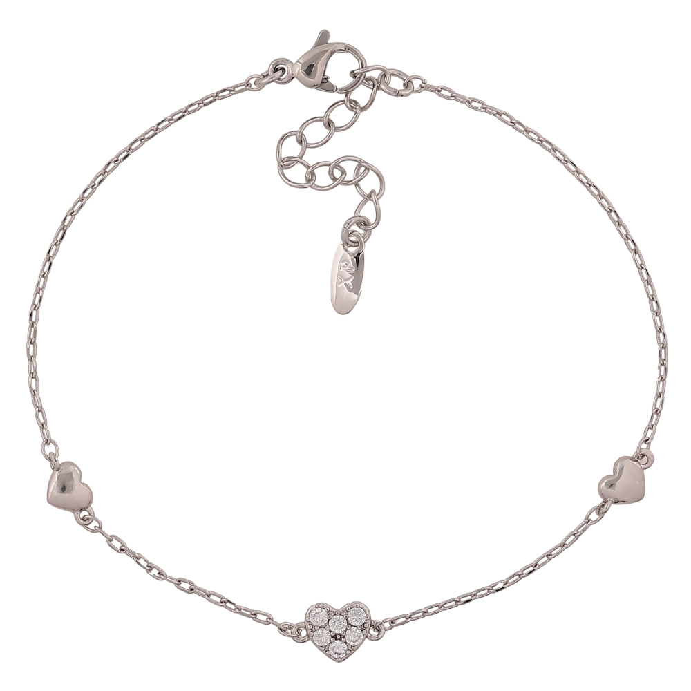Браслет Xuping колір Родій "Ланцюжок із сердечками" довжина з дод. ланцюжком 18-21см х 1-6мм