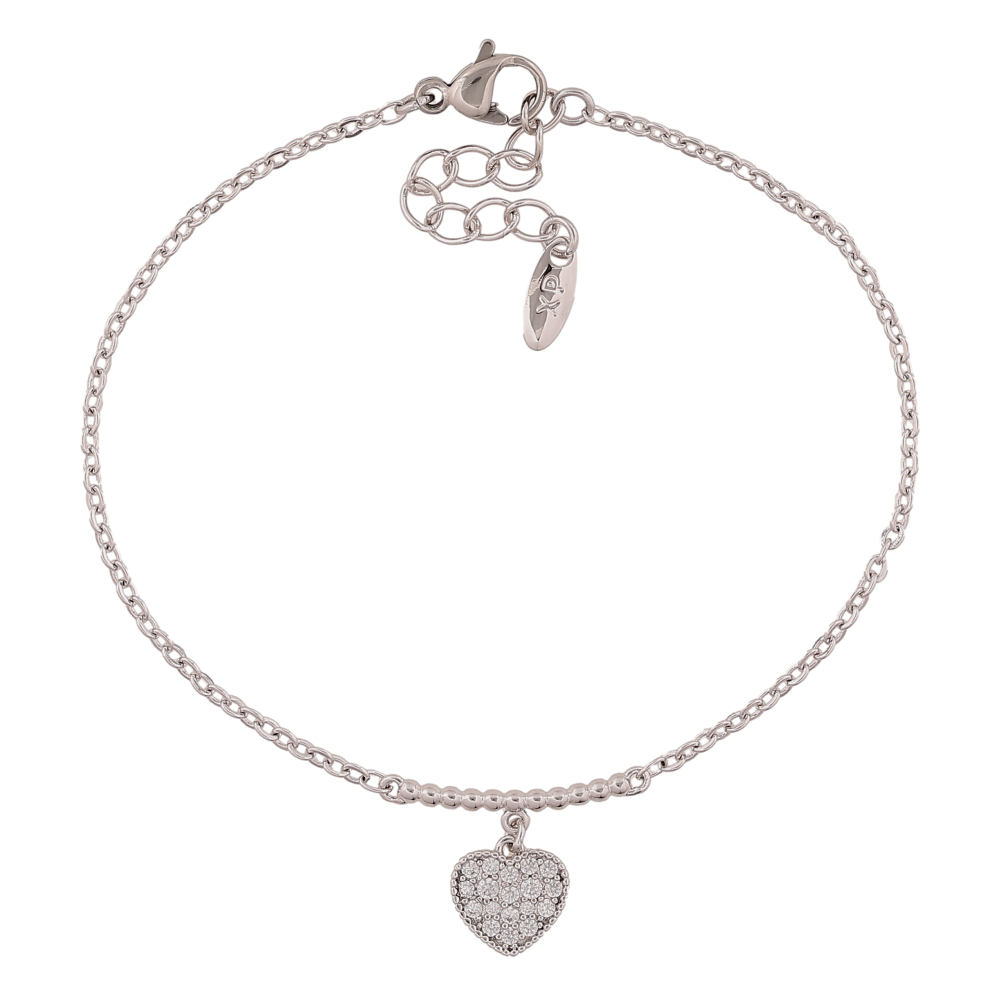 Браслет Xuping колір Родій "Ланцюжок із серцем" довжина з дод. ланцюжком 16.5-19.5см х 1.5мм