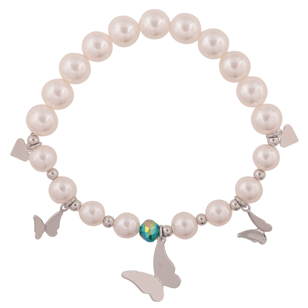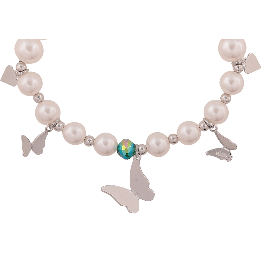 Браслет Xuping колір Родій "Перлинні намистини з метеликами" ø 3-8мм, вільний розмір