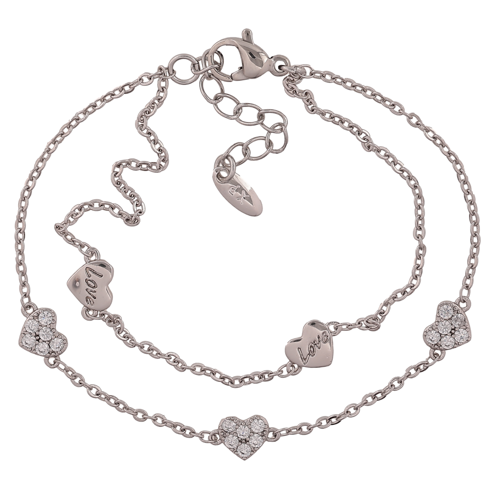 Браслет Xuping колір Родій "Подвійний ланцюжок із серцями" довжина з дод. ланцюжком 16-19см х 1.5-6мм