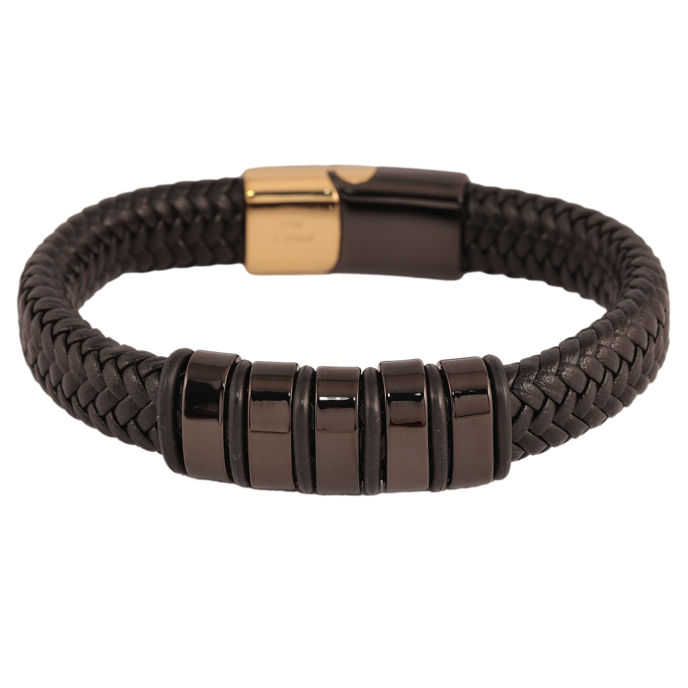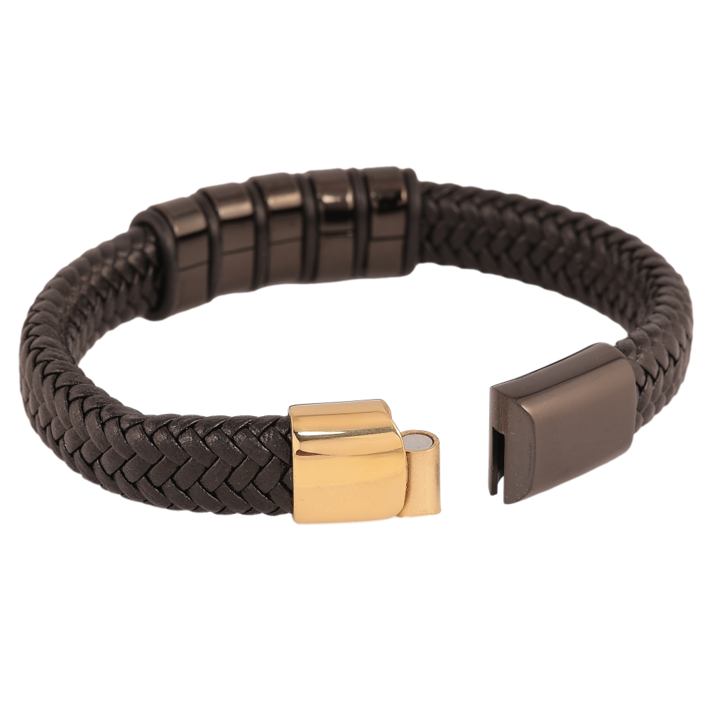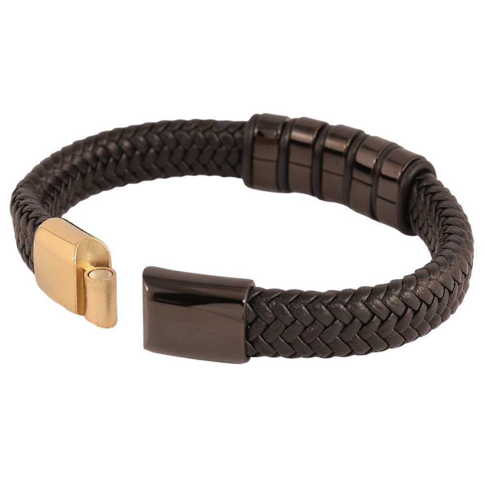 Браслет Xuping ТТМ Stainless Steel колір 14К "Чорний ремінець з накладками" довжина 21см х 12-15мм, застібка магніт