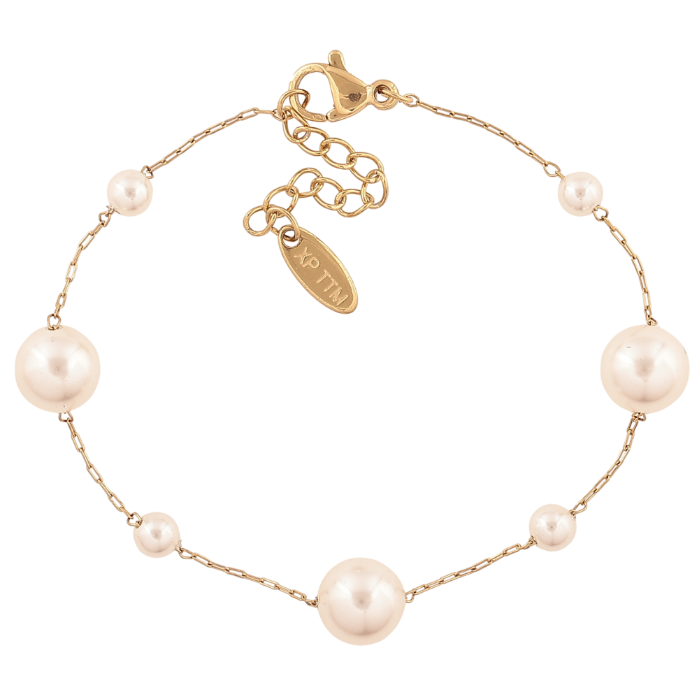 Браслет Xuping ТТМ Stainless Steel колір 14К "Ланцюжок з перлинними намистинами" довжина з дод. ланцюжком 17-20см х 1-8мм