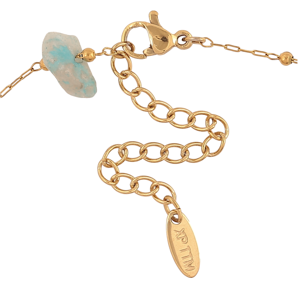 Браслет Xuping ТТМ Stainless Steel колір 14К на ногу "Ланцюжок з кольоровим камінням" довжина з доп. ланцюжком 24.5-30см х 1-2мм