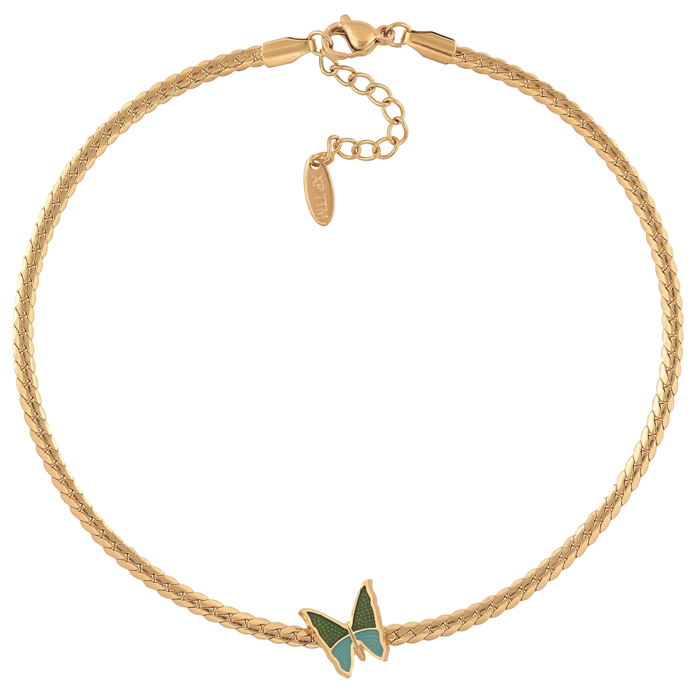 Браслет Xuping ТТМ Stainless Steel колір 14К на ногу "Ланцюжок з метеликом" довжина з дод. ланцюжком 27.5-31см х 3-13мм