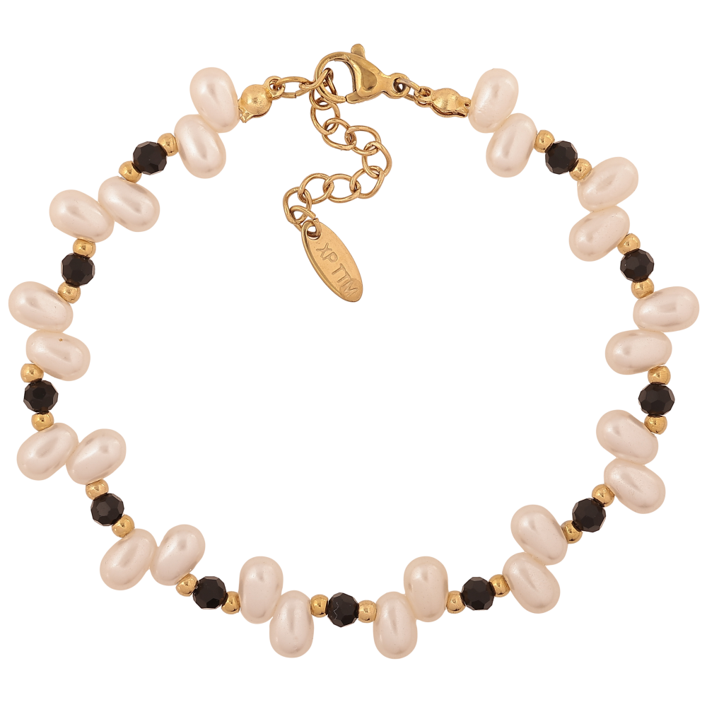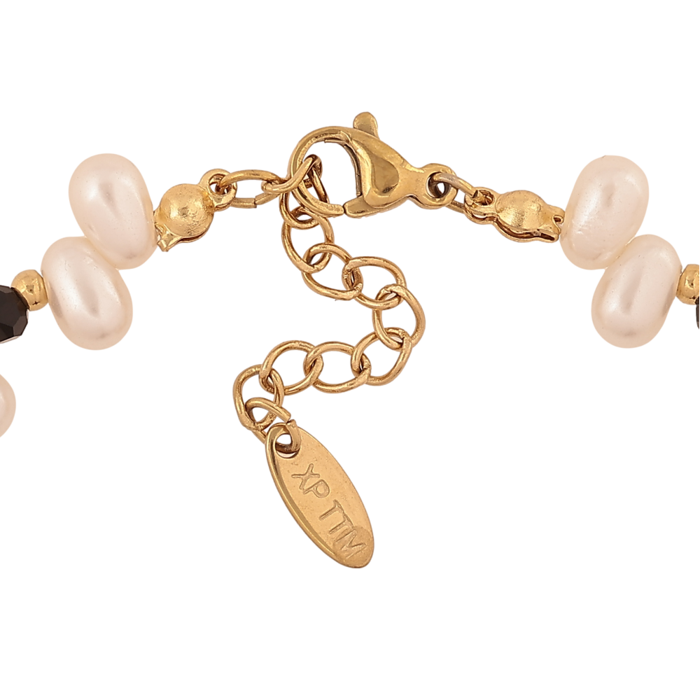Браслет Xuping ТТМ Stainless Steel колір 14К "Перлинно-чорні намистини" довжина з дод. ланцюжком 18.5-22см х 2-11мм