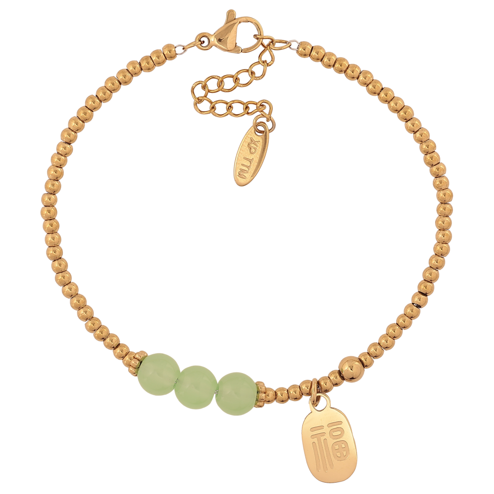 Браслет Xuping ТТМ Stainless Steel колір 14К "Золотисто-зелені намистини з підвіскою" довжина з дод. ланцюжком 17-20см х 2.5-6мм