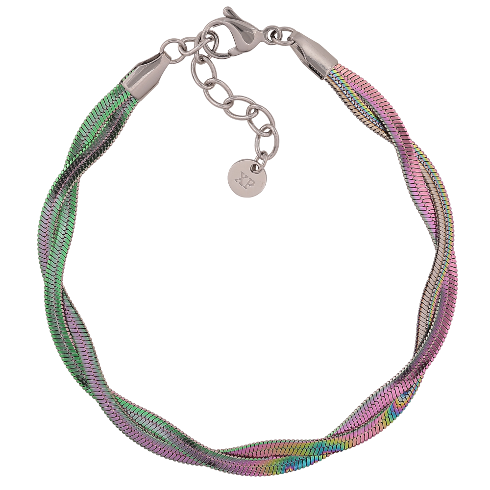Браслет Xuping ТТМ Stainless Steel колір Хамелеон "Сплетені ланцюжки Снейк" довжина з дод. ланцюжком 20-23.5см х 6мм