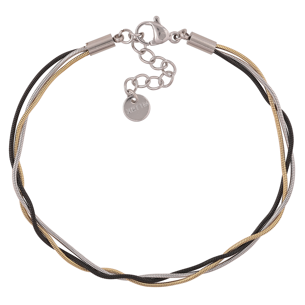 Браслет Xuping ТТМ Stainless Steel колір Родій+Black+14К "Три ланцюжки" довжина з дод. ланцюжком 18-21см х 3мм
