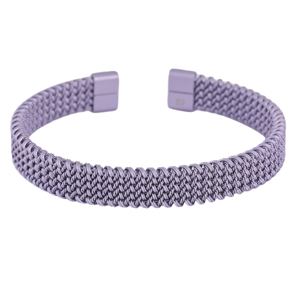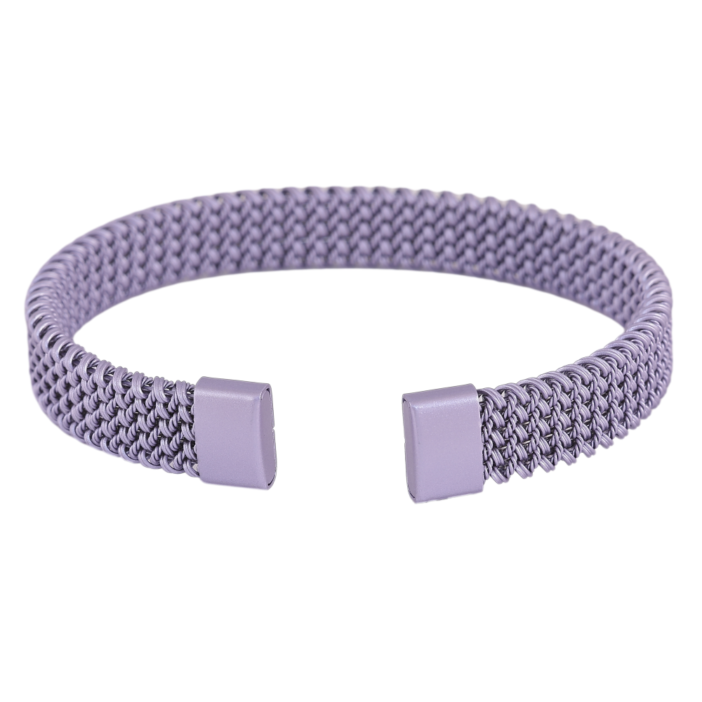 Браслет Xuping ТТМ Stainless Steel колір Родій "Декоративний візерунок пружинка, фарбування бузковою емаллю, шир. 10мм" ø 6см