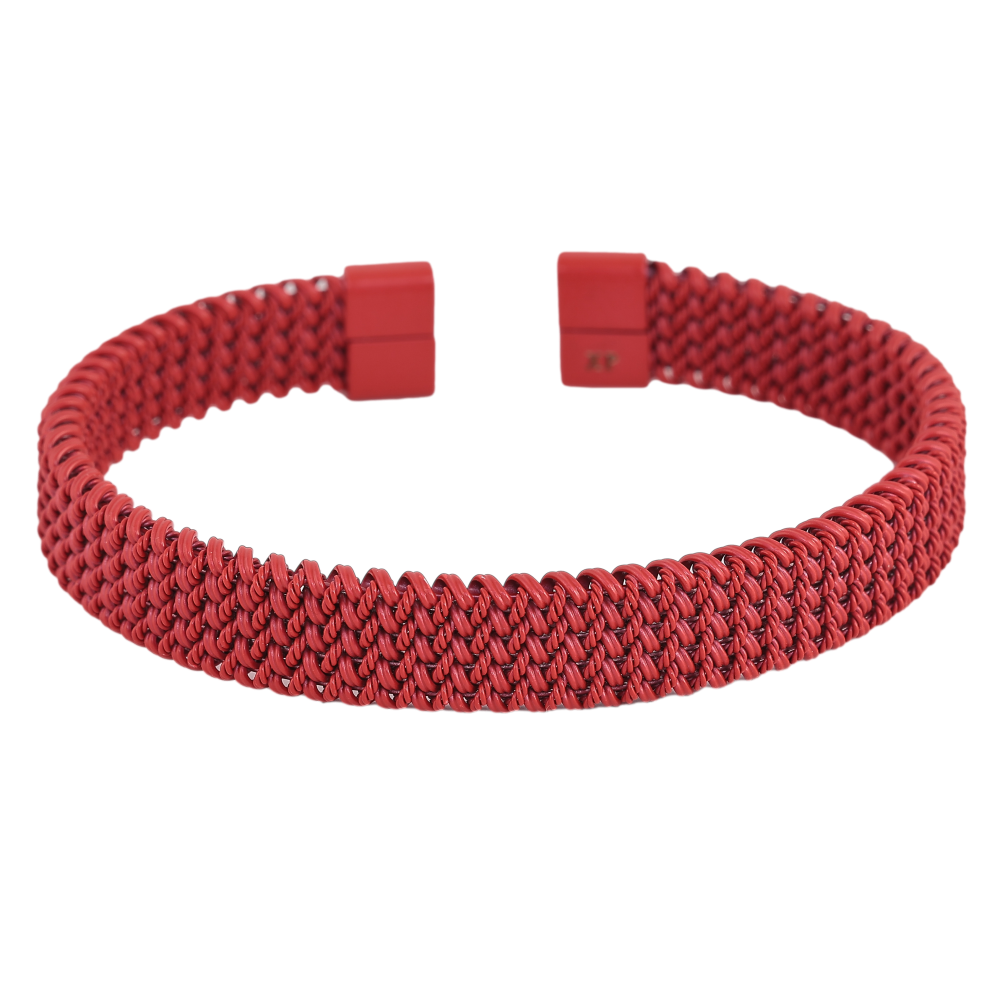 Браслет Xuping ТТМ Stainless Steel колір Родій "Декоративний візерунок пружинка, фарбування червоною емаллю, шир. 10мм" ø 6см