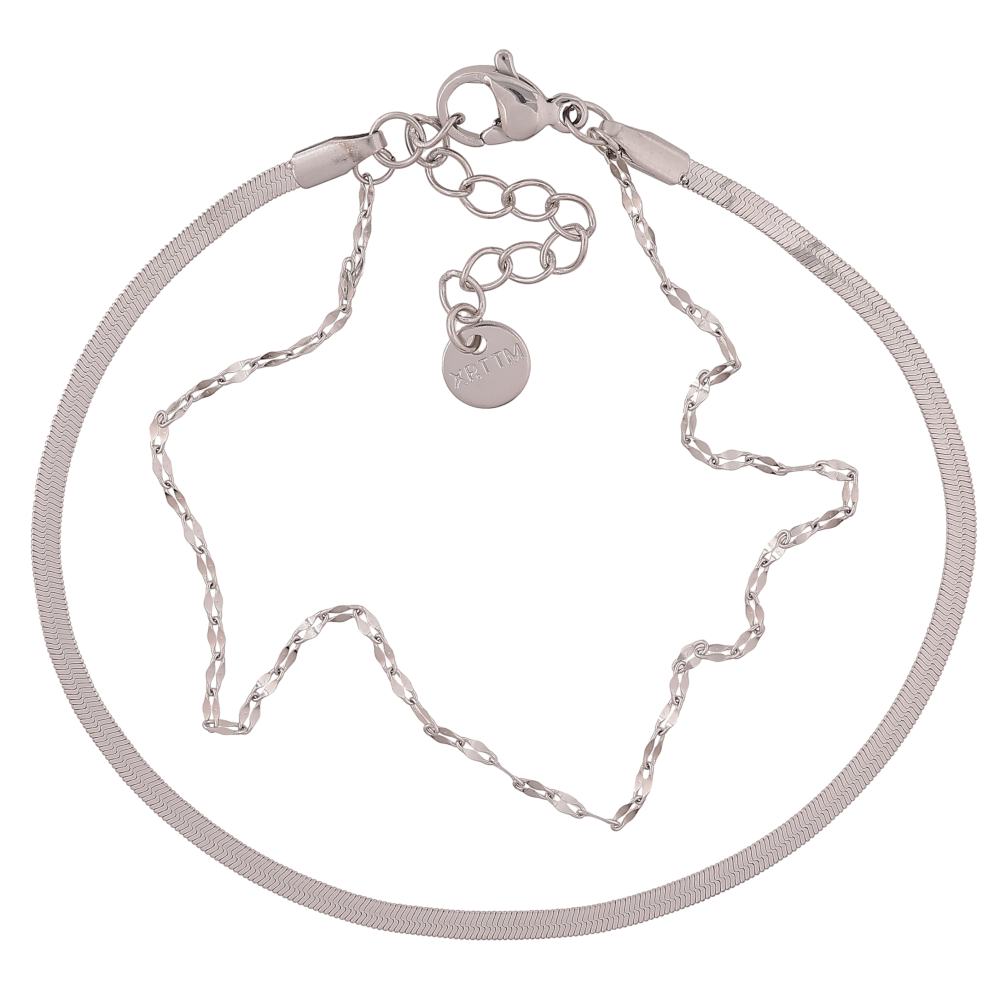 Браслет Xuping ТТМ Stainless Steel колір Родій "Два ланцюжки" довжина з дод. ланцюжком 18-21см х 1.5-2мм
