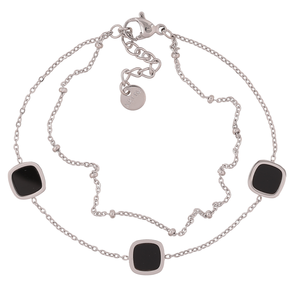 Браслет Xuping ТТМ Stainless Steel колір Родій "Два ланцюжки з чорними вставками" довжина з дод. ланцюжком 17.5-20.5см х 1-8мм