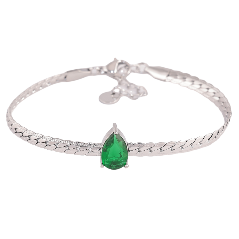 Браслет Нержавіюча сталь "Ланцюжок із кристальною зеленою крапелькою" розмір з доп. ланцюжком 17-20см х 4мм