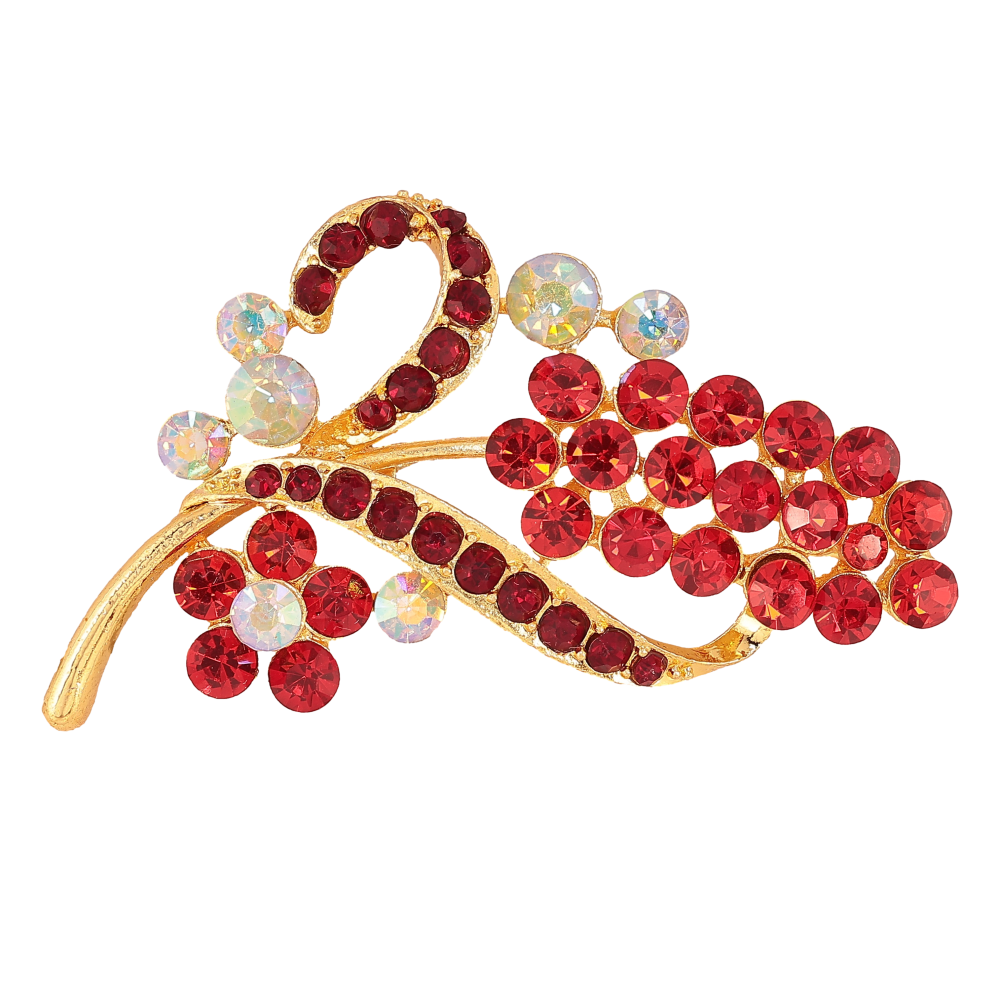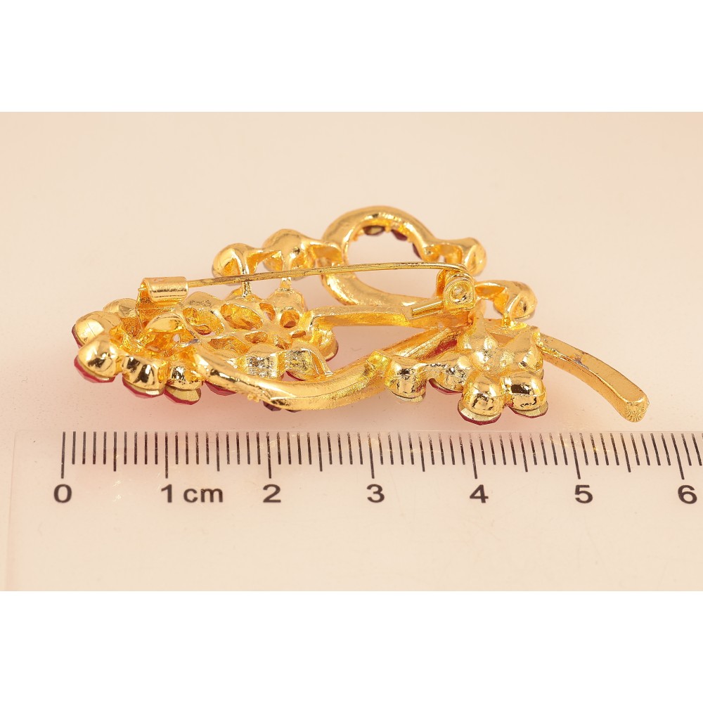 Брошка "Гілочка з червоними стразами"