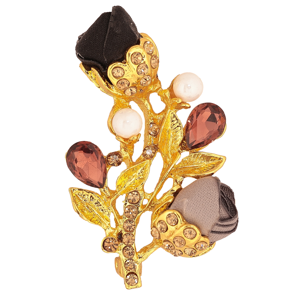 Брошка "Гілочка з чорно-сірими квіточками, стразами та перлинами"