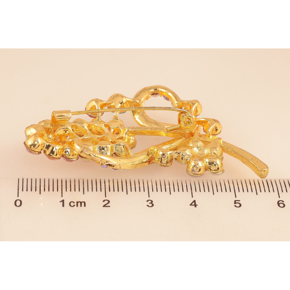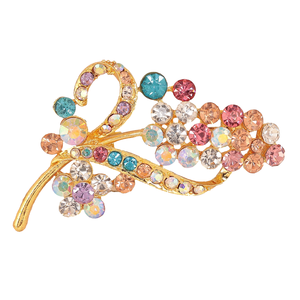 Брошка "Гілочка з різнокольоровими стразами"