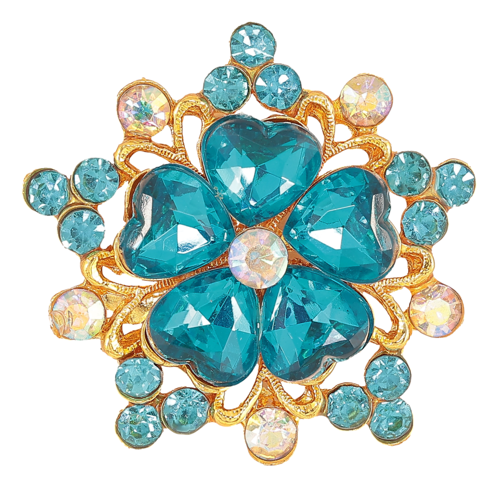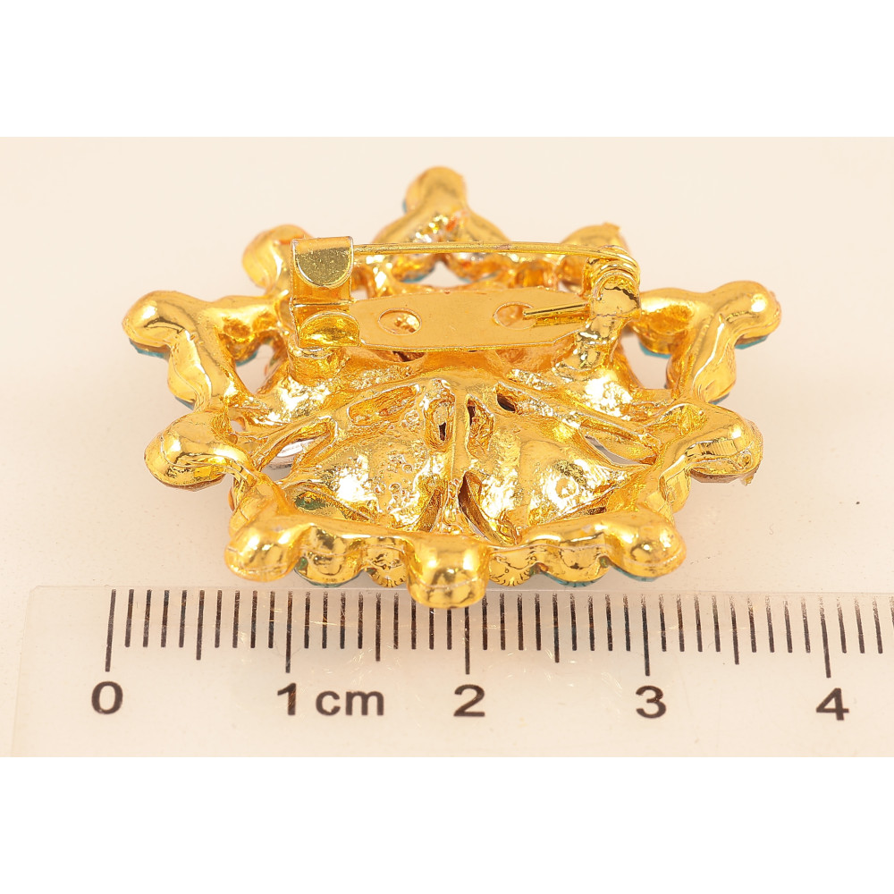 Брошка "Квітка з бірюзовими стразами"