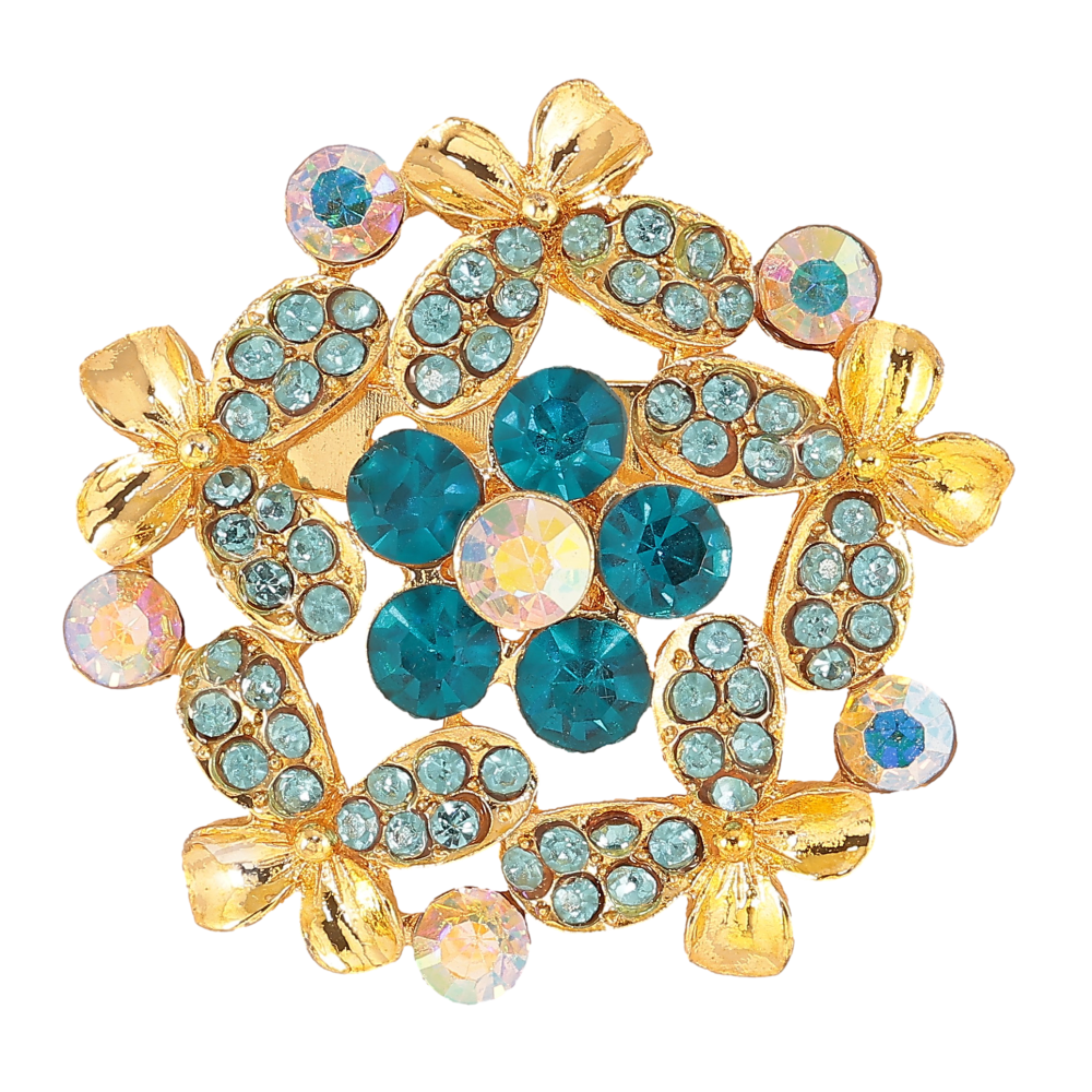 Брошка "Квітка з бірюзовими стразами"