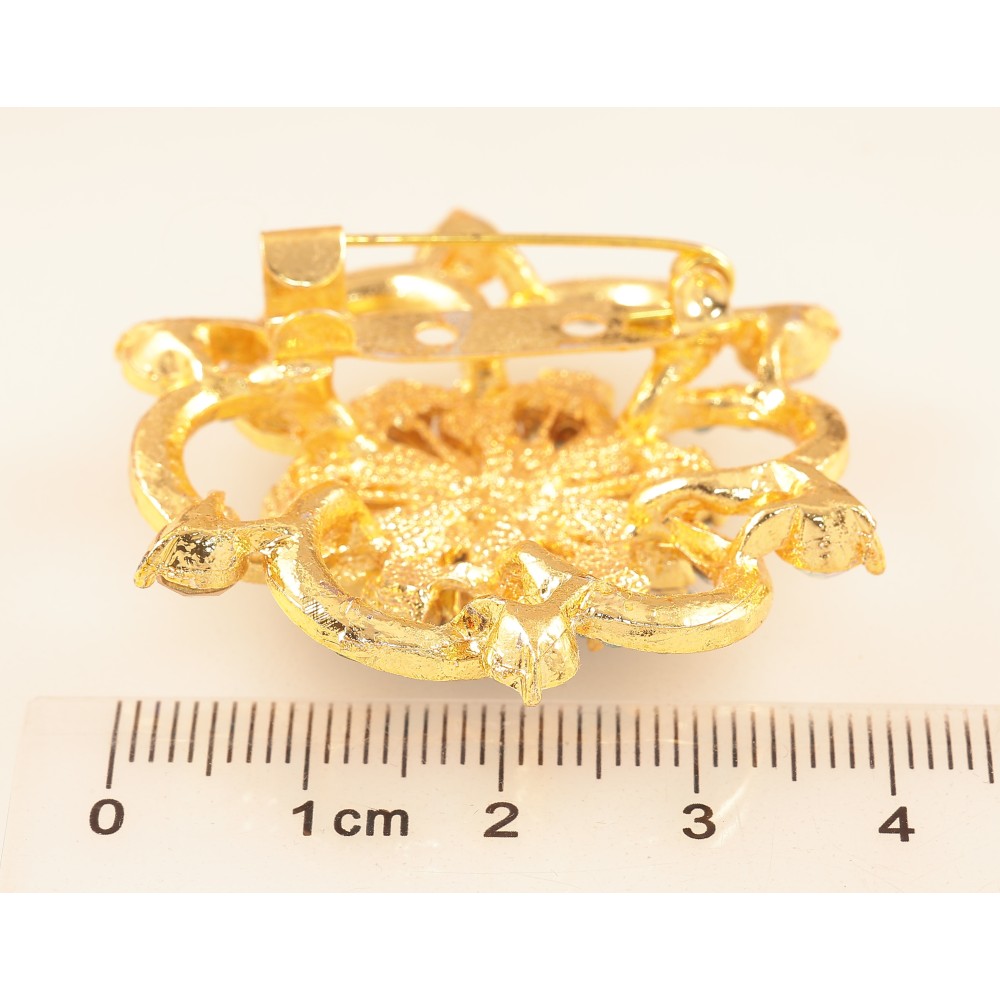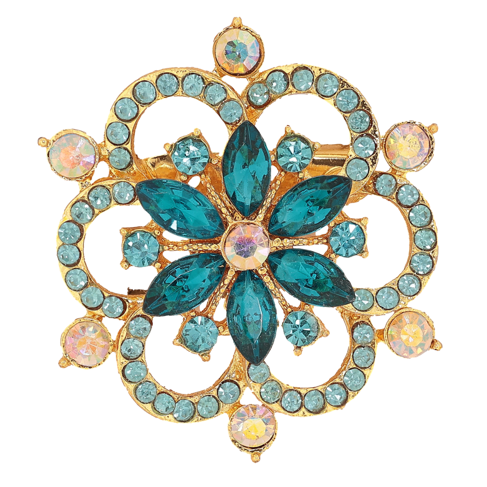 Брошка "Квітка з бірюзовими стразами"