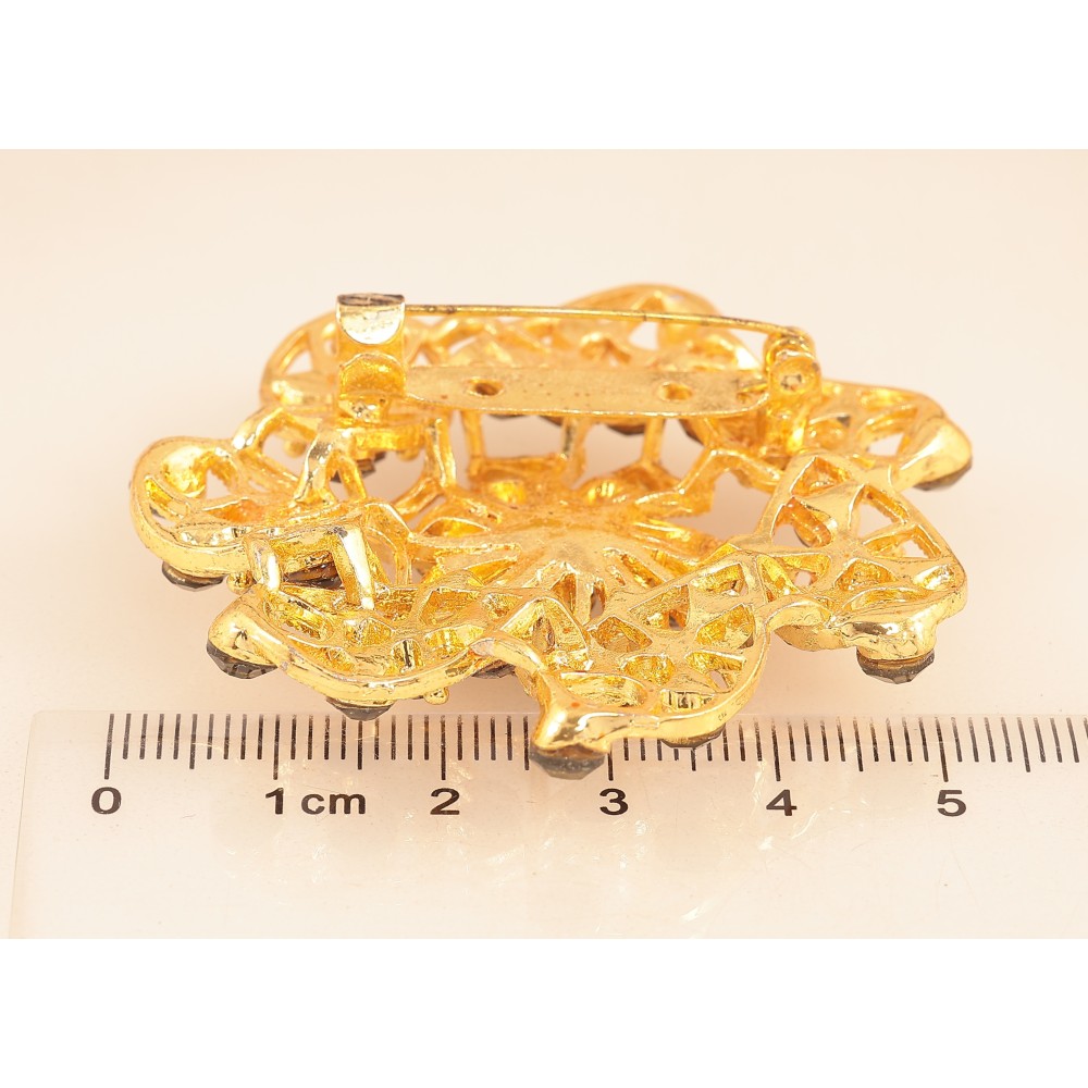 Брошка "Квітка з чорними стразами"