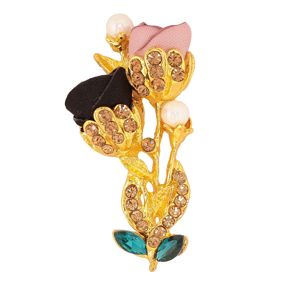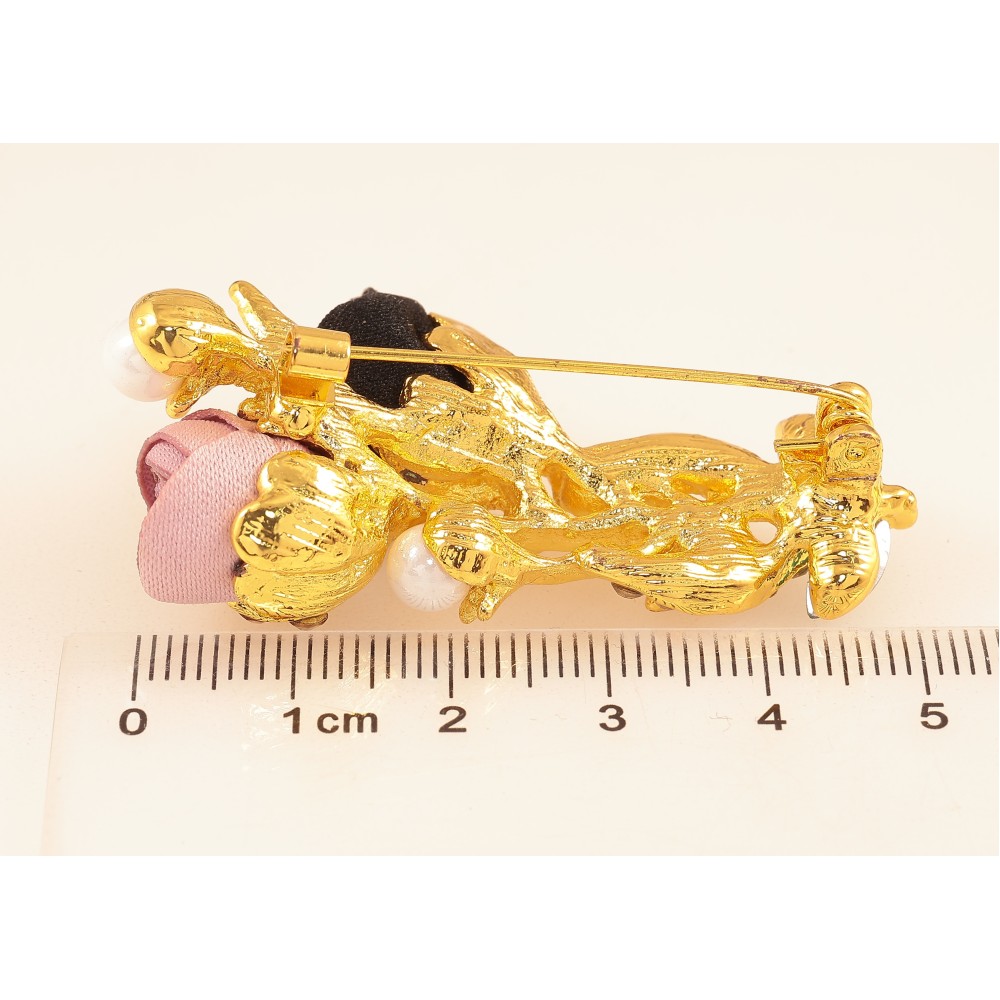 Брошка "Квіточка з атласними трояндами та стразами"