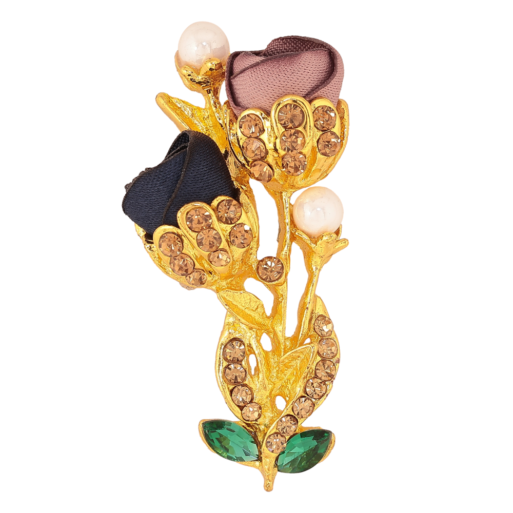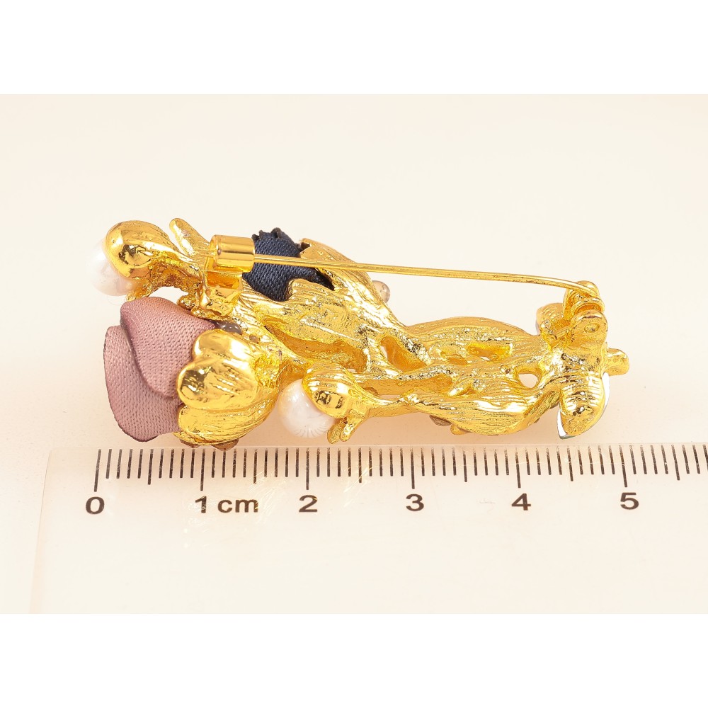 Брошка "Квіточка з атласними трояндами та стразами"