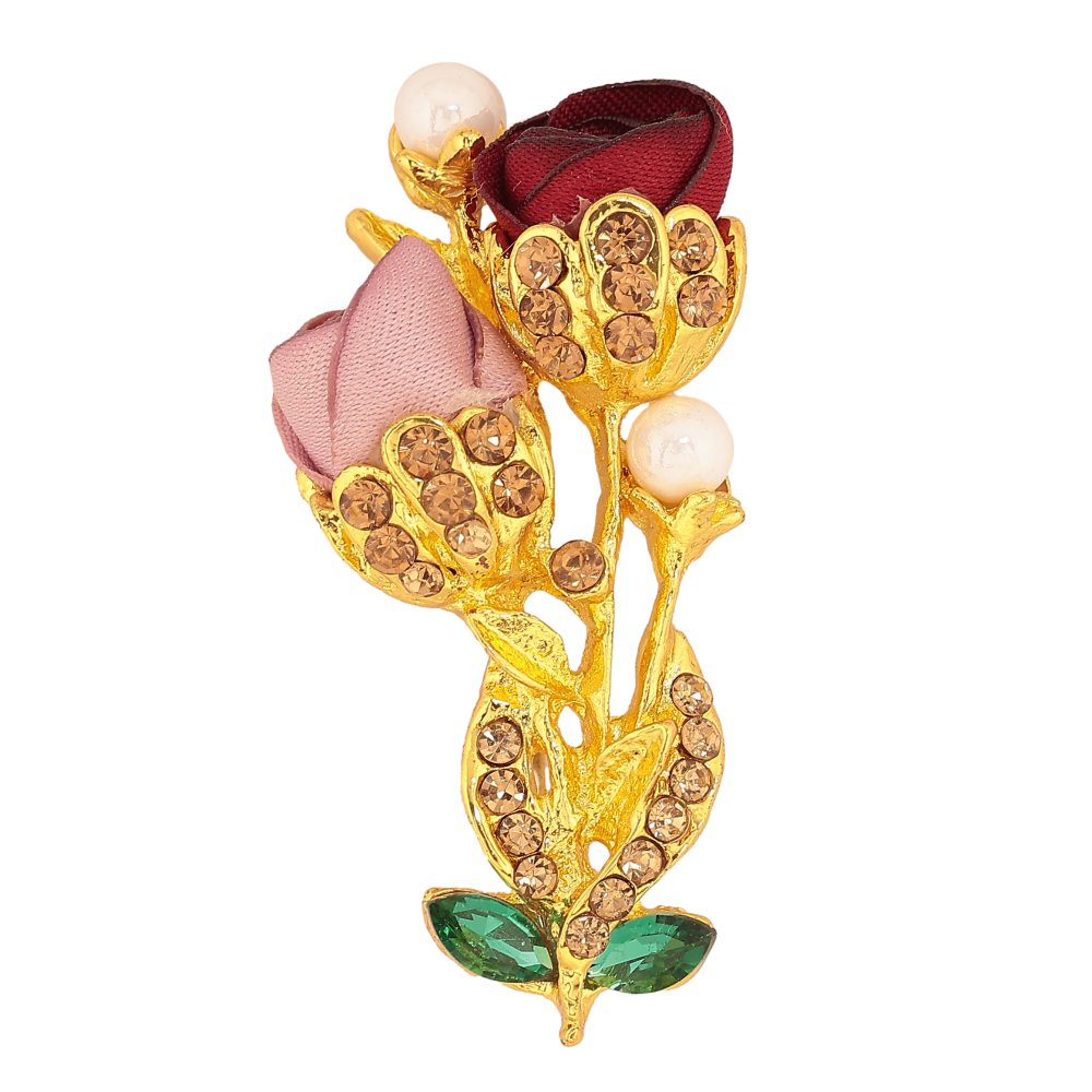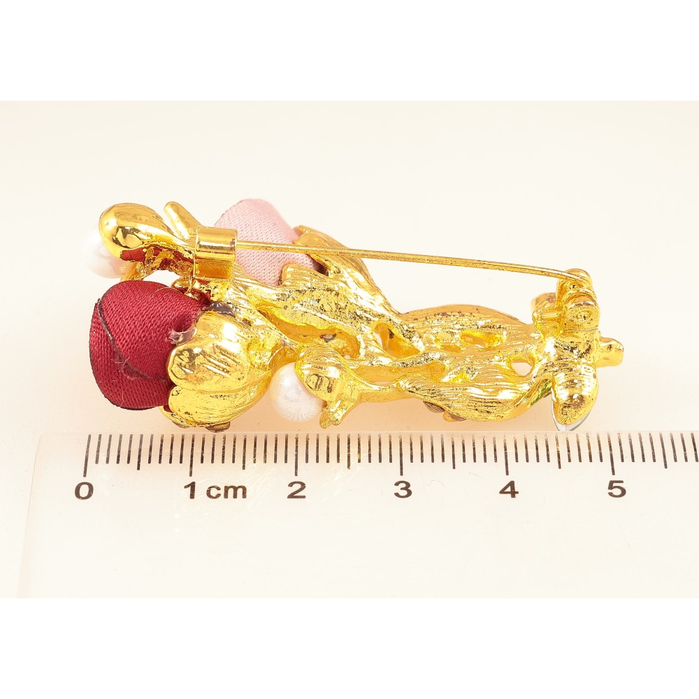 Брошка "Квіточка з атласними трояндами та стразами"