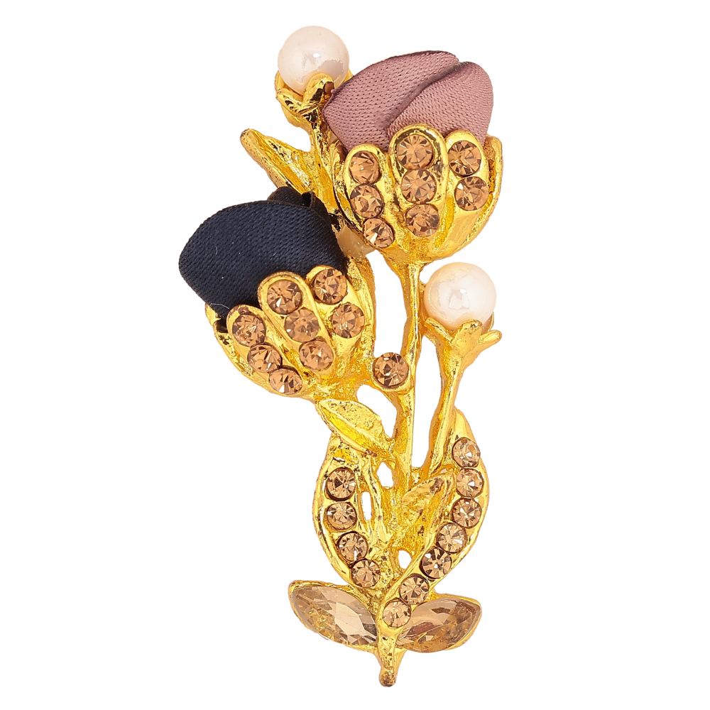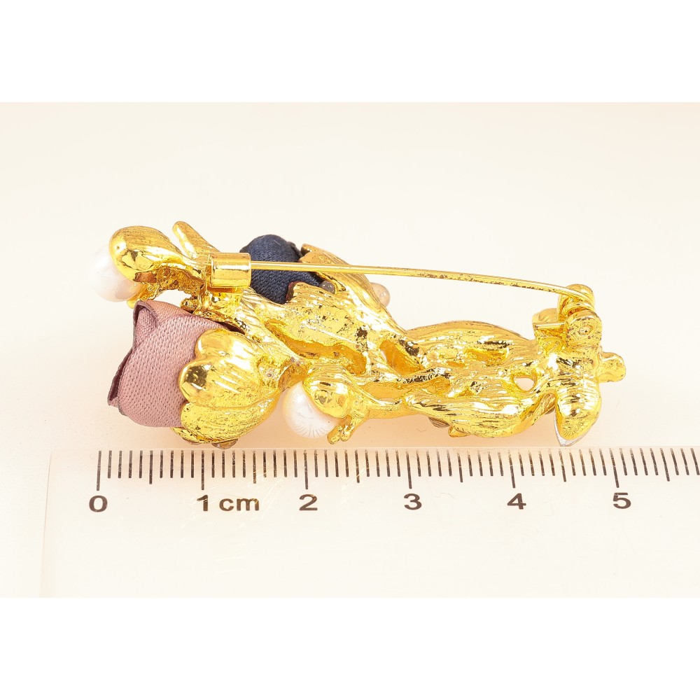 Брошка "Квіточка з атласними трояндами та стразами"