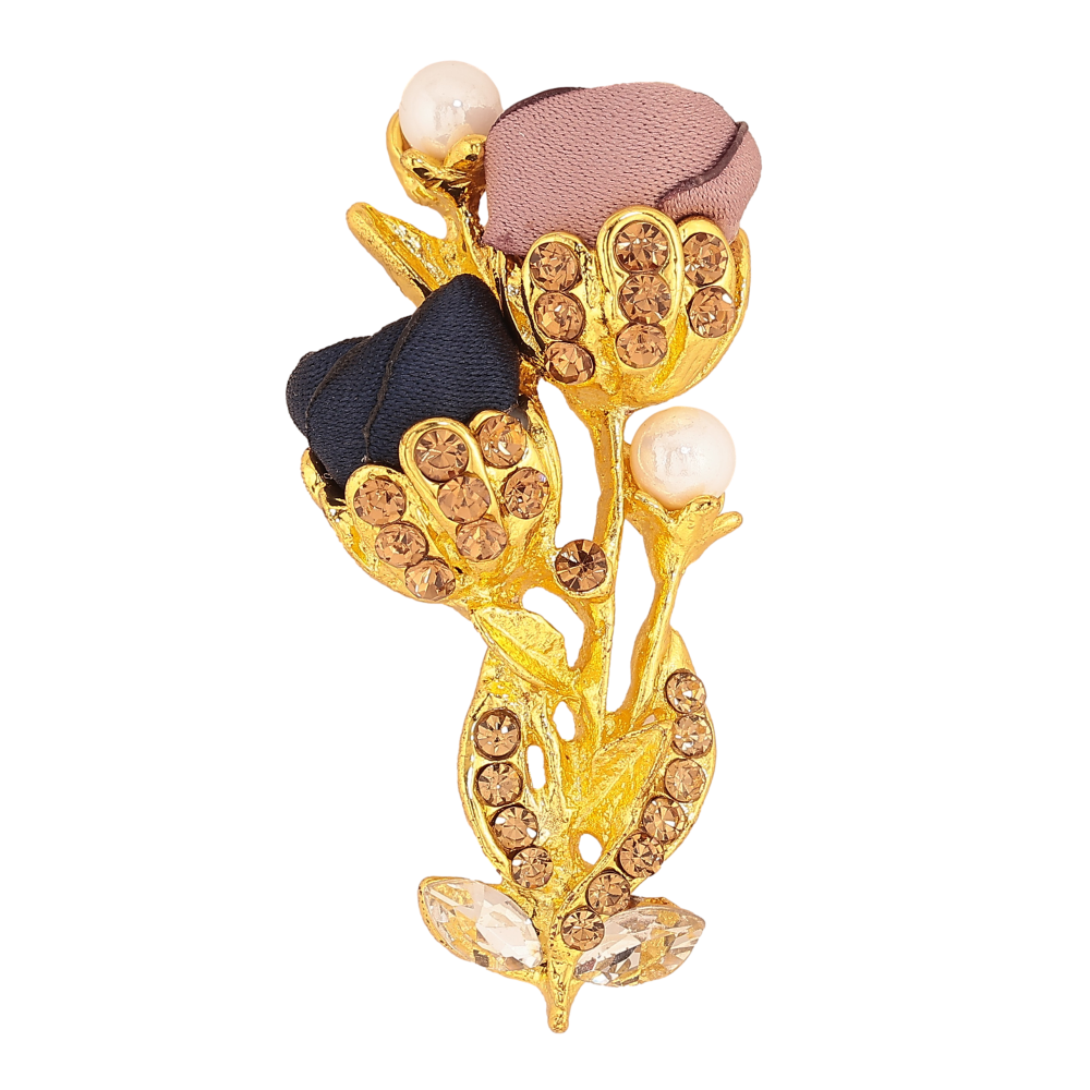 Брошка "Квіточка з атласними трояндами та стразами"