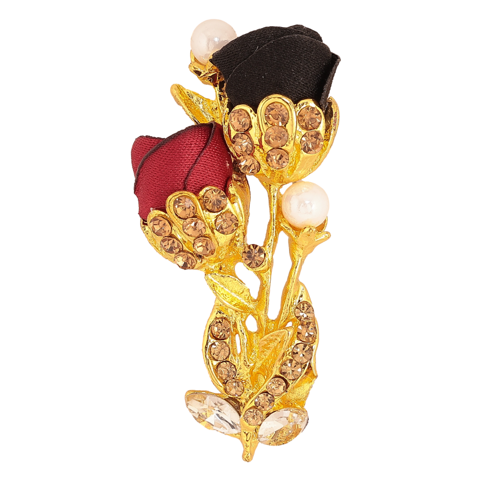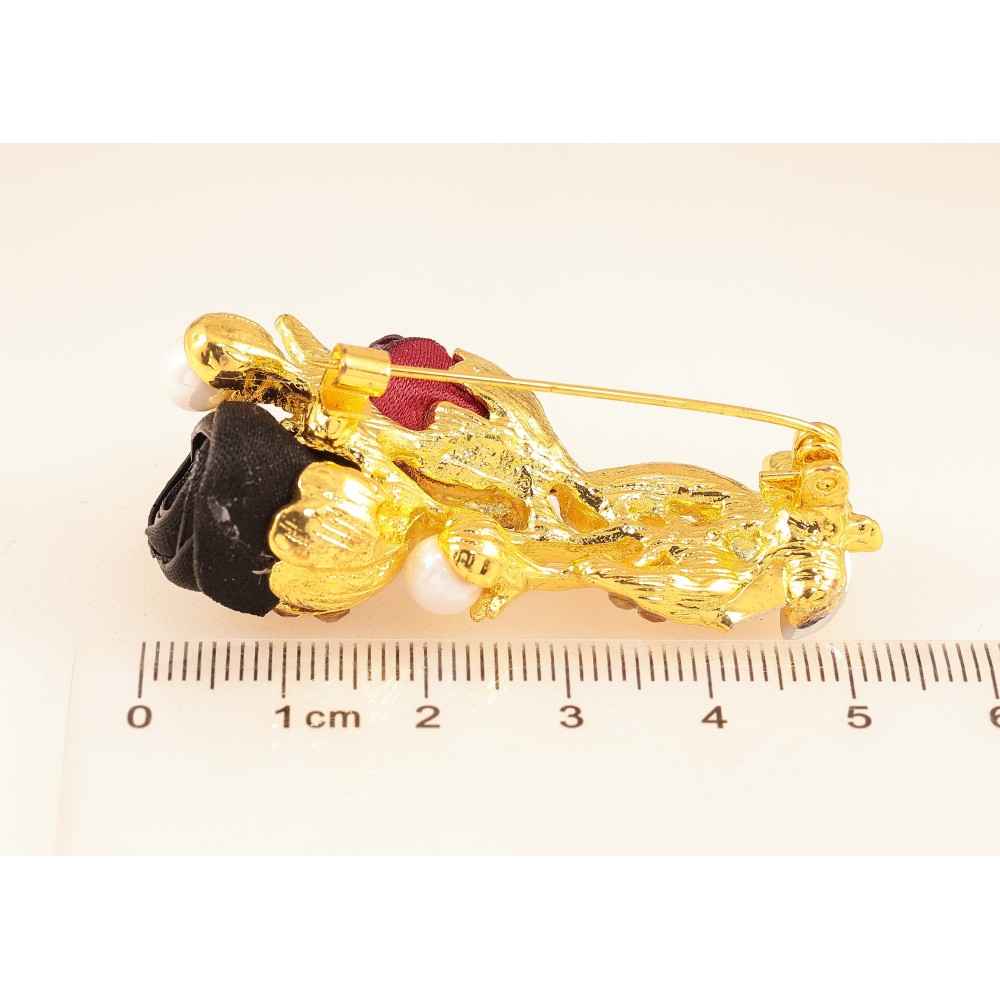 Брошка "Квіточка з атласними трояндами та стразами"