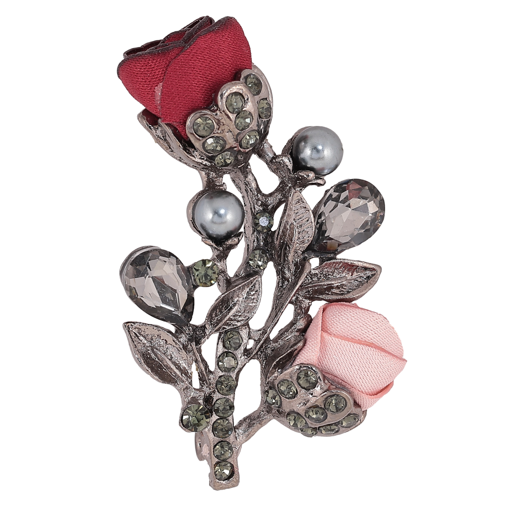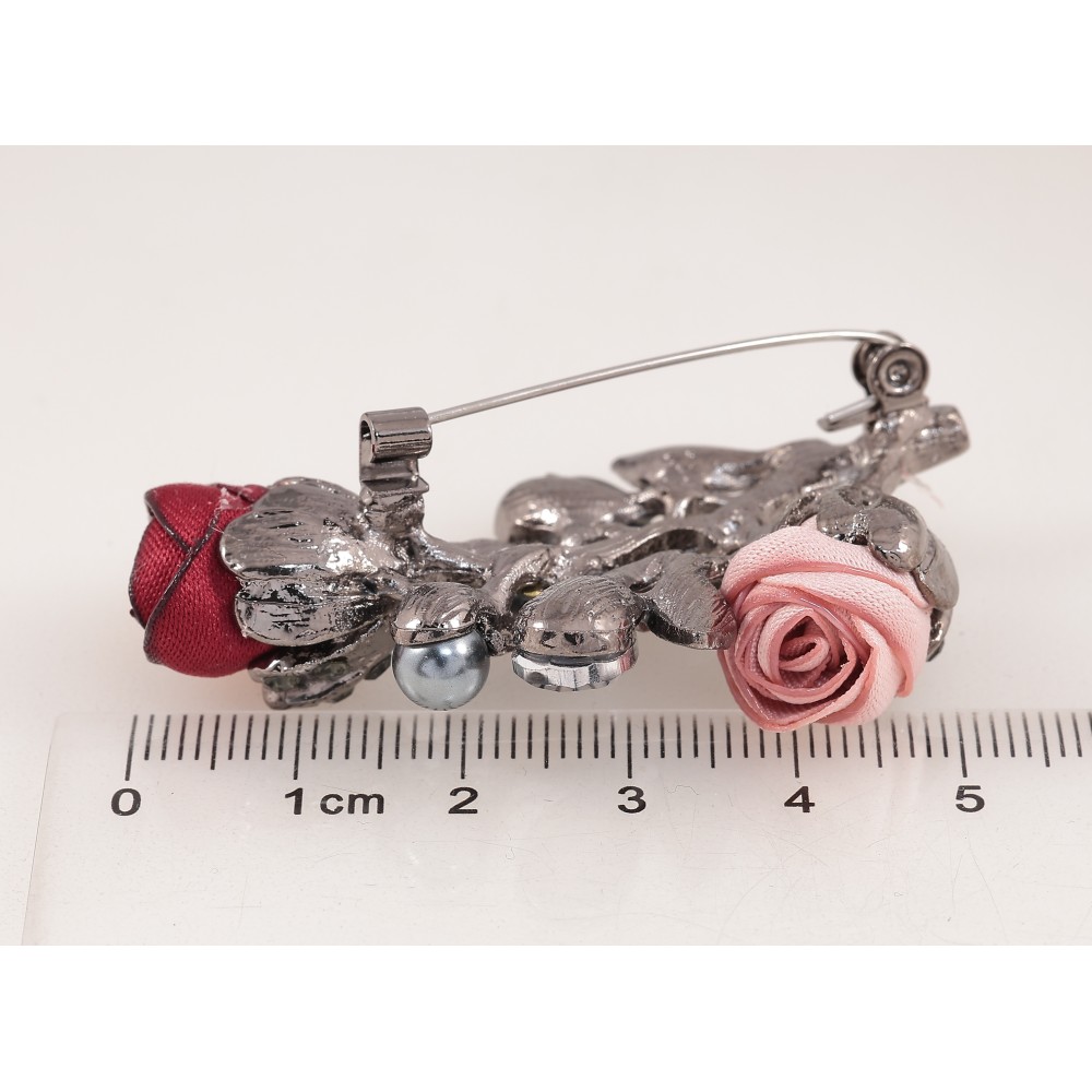 Брошка "Квіточка з атласними трояндами та стразами"