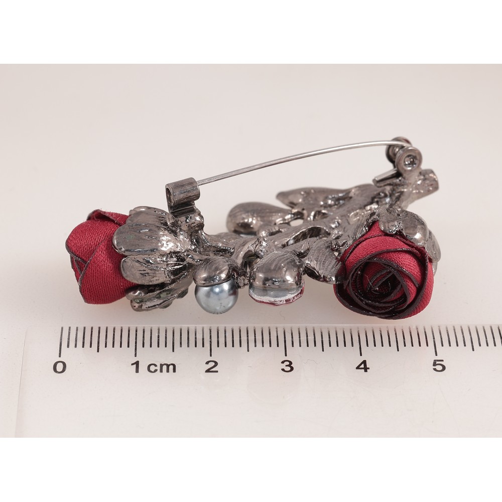 Брошка "Квіточка з атласними трояндами та стразами" фото №2
