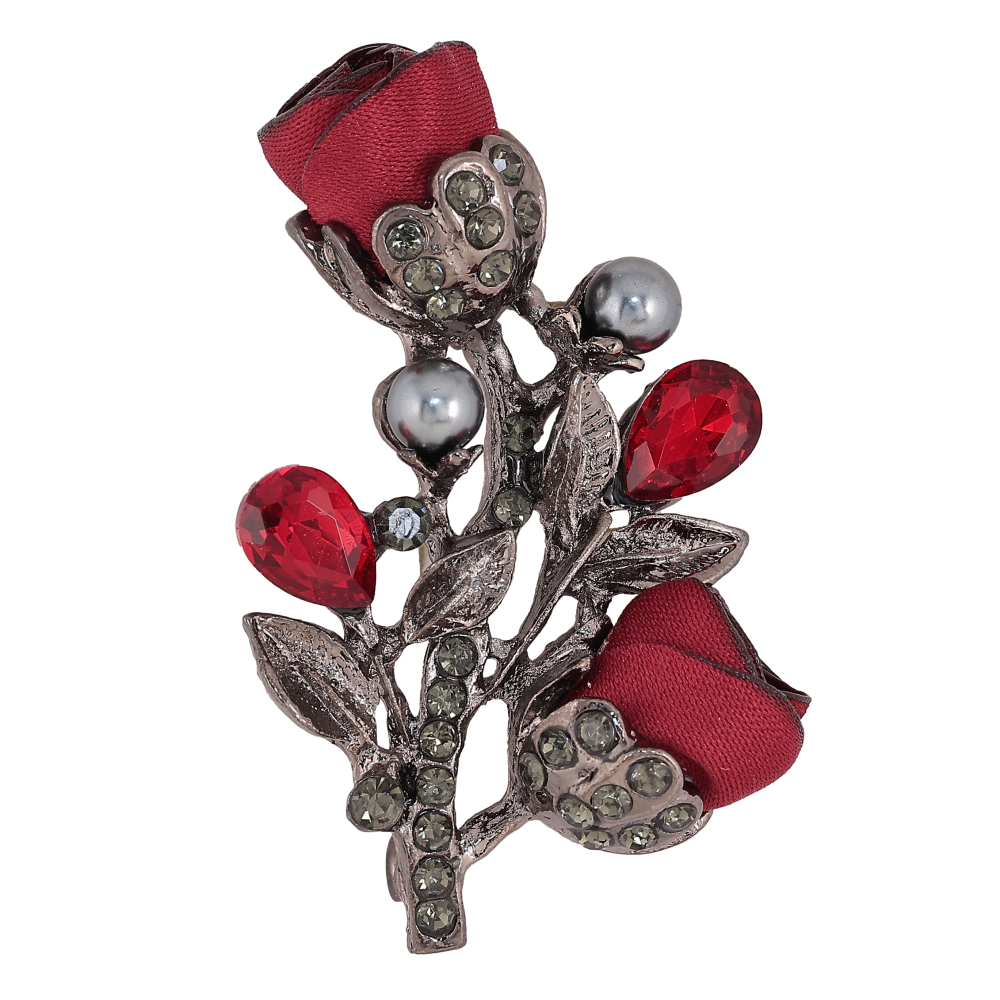 Брошка "Квіточка з атласними трояндами та стразами"