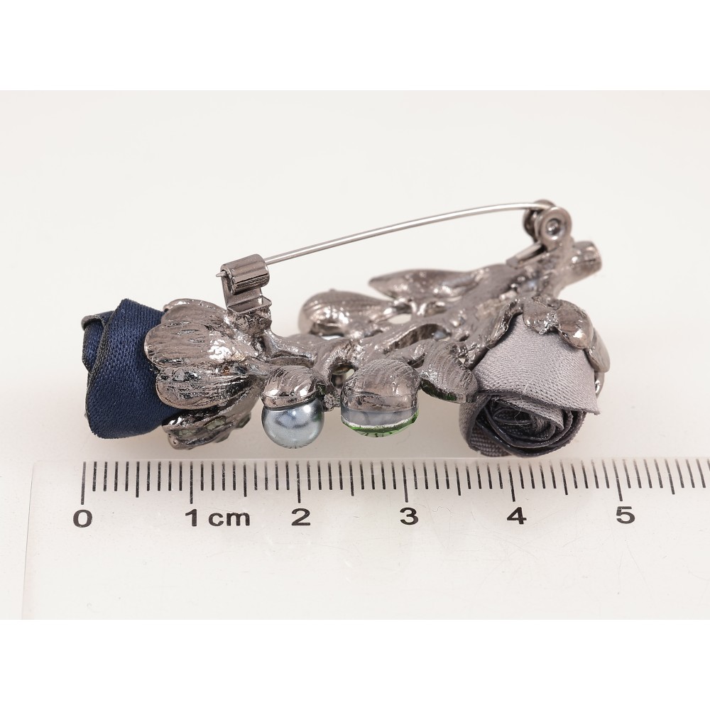 NEW Брошка "Квіточка з атласними трояндами та стразами" фото №2