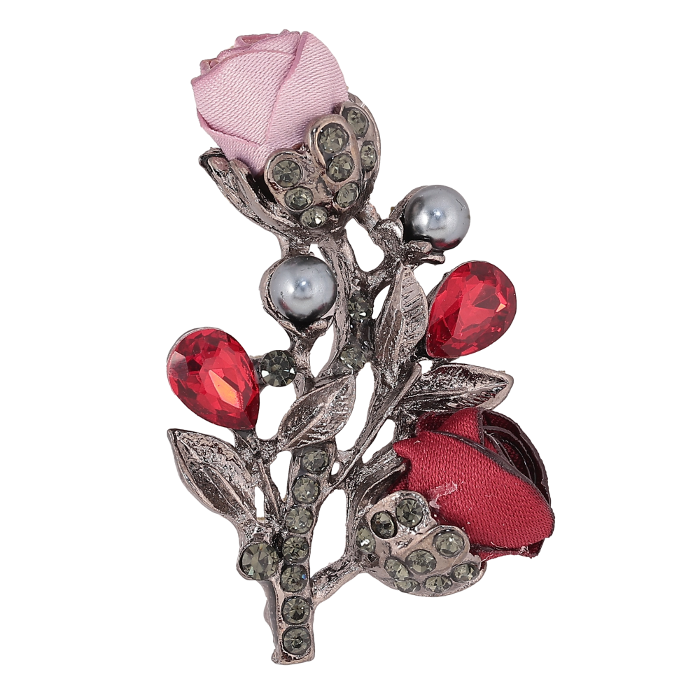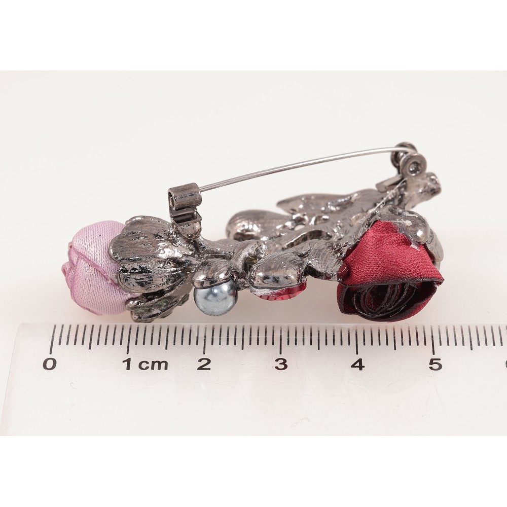 Брошка "Квіточка з атласними трояндами та стразами"