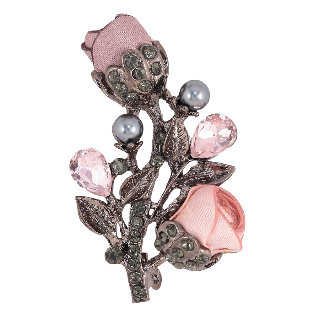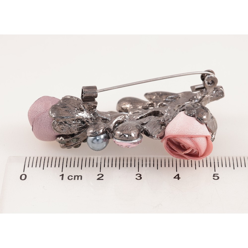 Брошка "Квіточка з атласними трояндами та стразами"