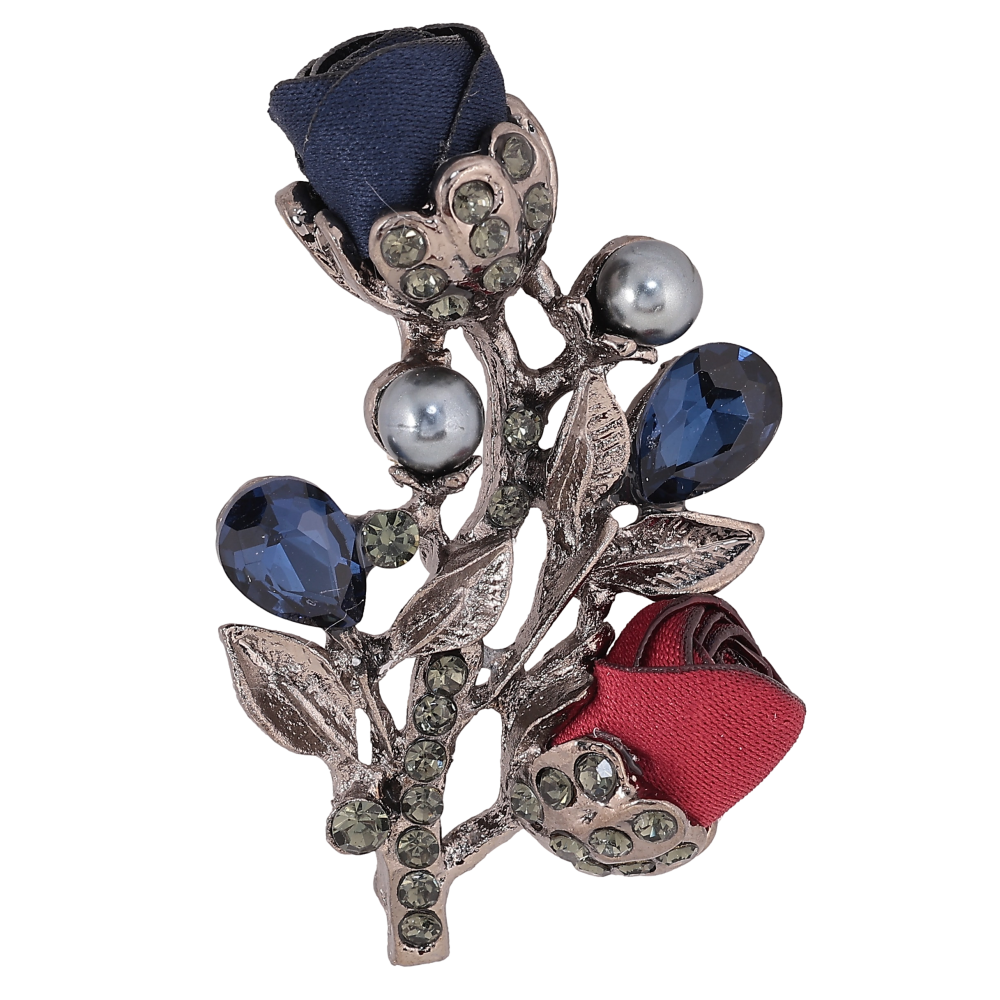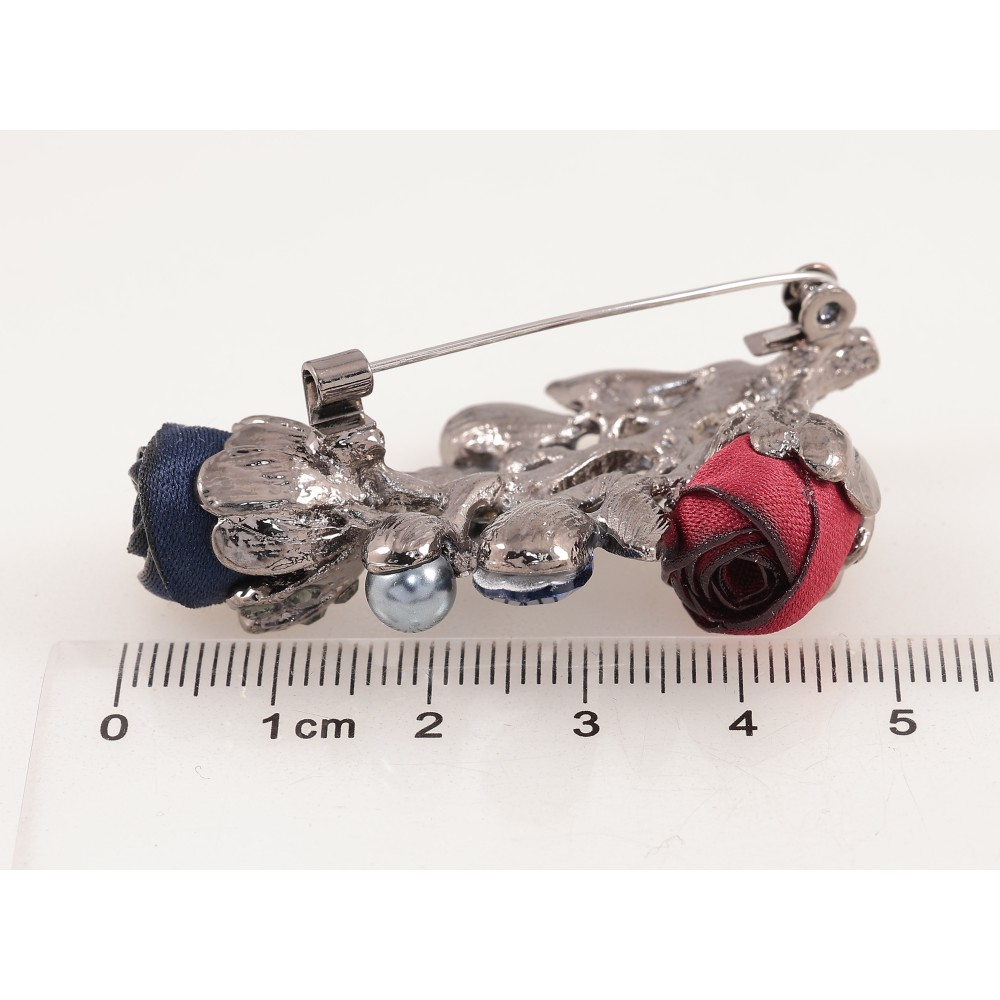 Брошка "Квіточка з атласними трояндами та стразами"