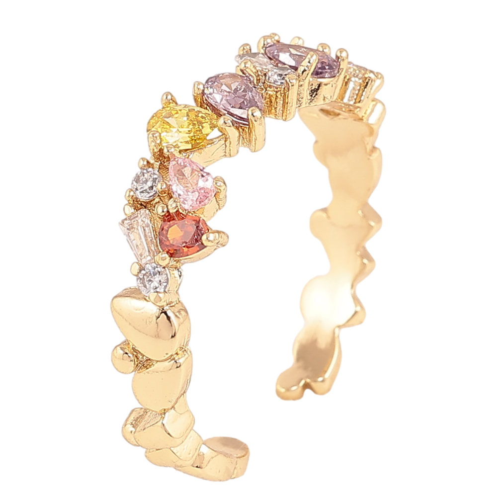 Каблучка Xuping колір Позолота 14K "Візерунок з різнокольоровими кристалами"