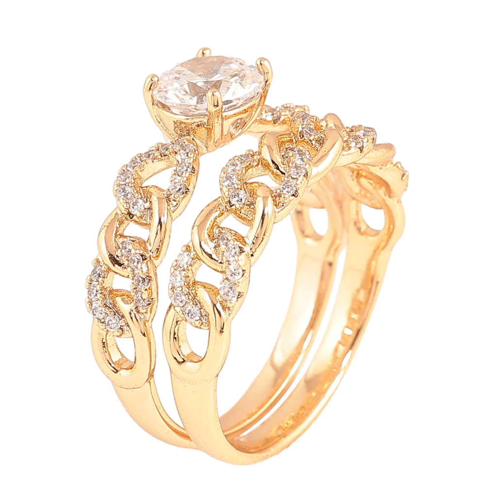 Каблучка Xuping колір Позолота 18K "Подвійне з візерунком ланцюжок та кристалами"