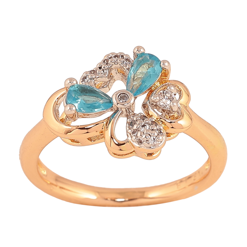 Каблучка Xuping колір Позолота 18K + Родій "Квітка з блакитними кристалами"