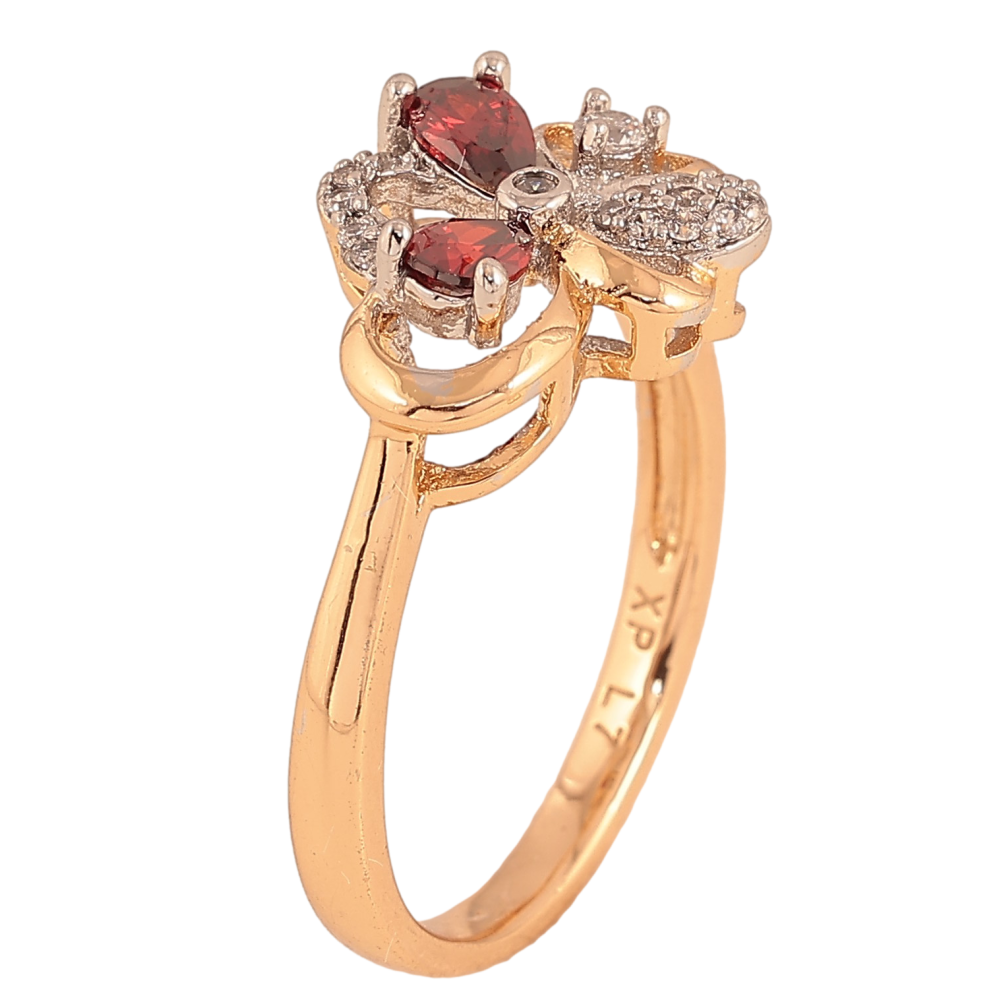 Каблучка Xuping колір Позолота 18K + Родій "Квітка з червоним кристалом"