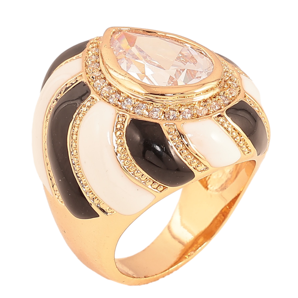 Каблучка Xuping колір Позолота 18K "Великий чорно-білий купол з кристалом"