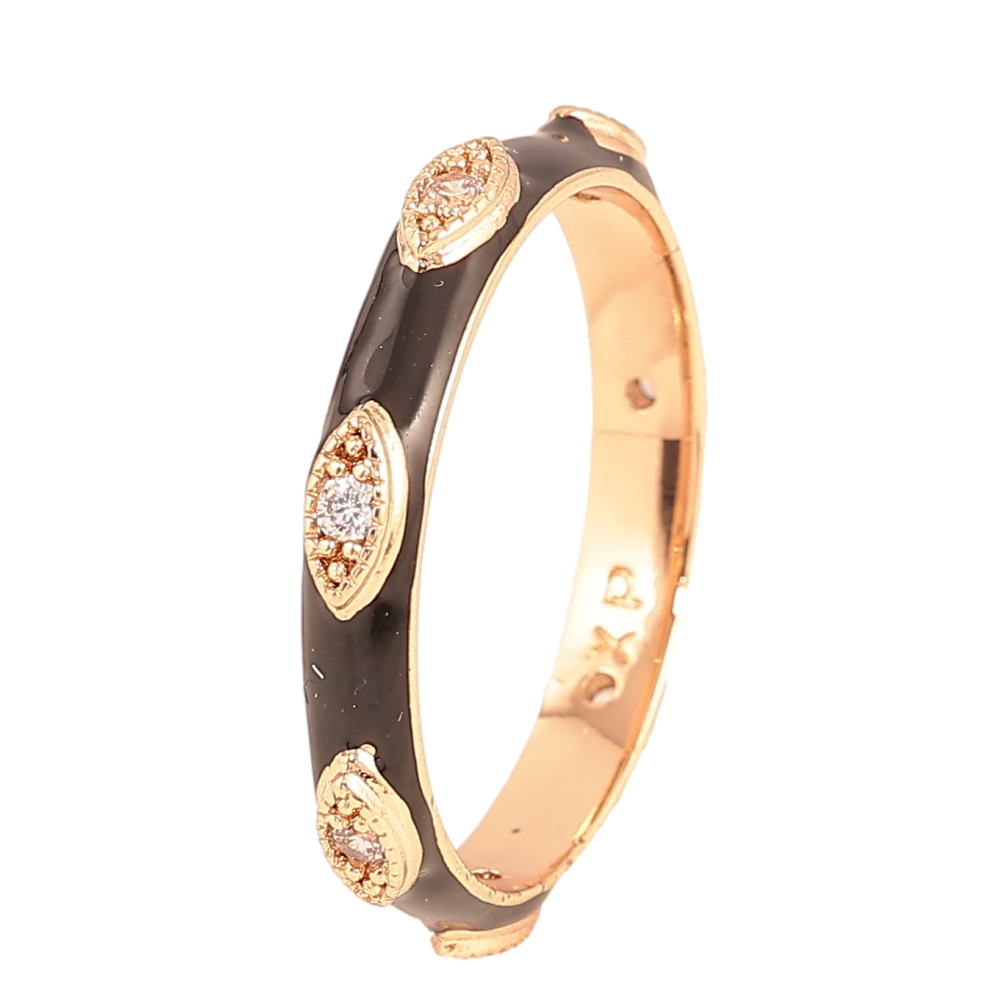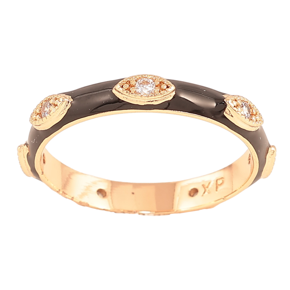 Каблучка Xuping колір Позолота 18K "Візерунок з кристалами і чорною емаллю" шир. 3мм