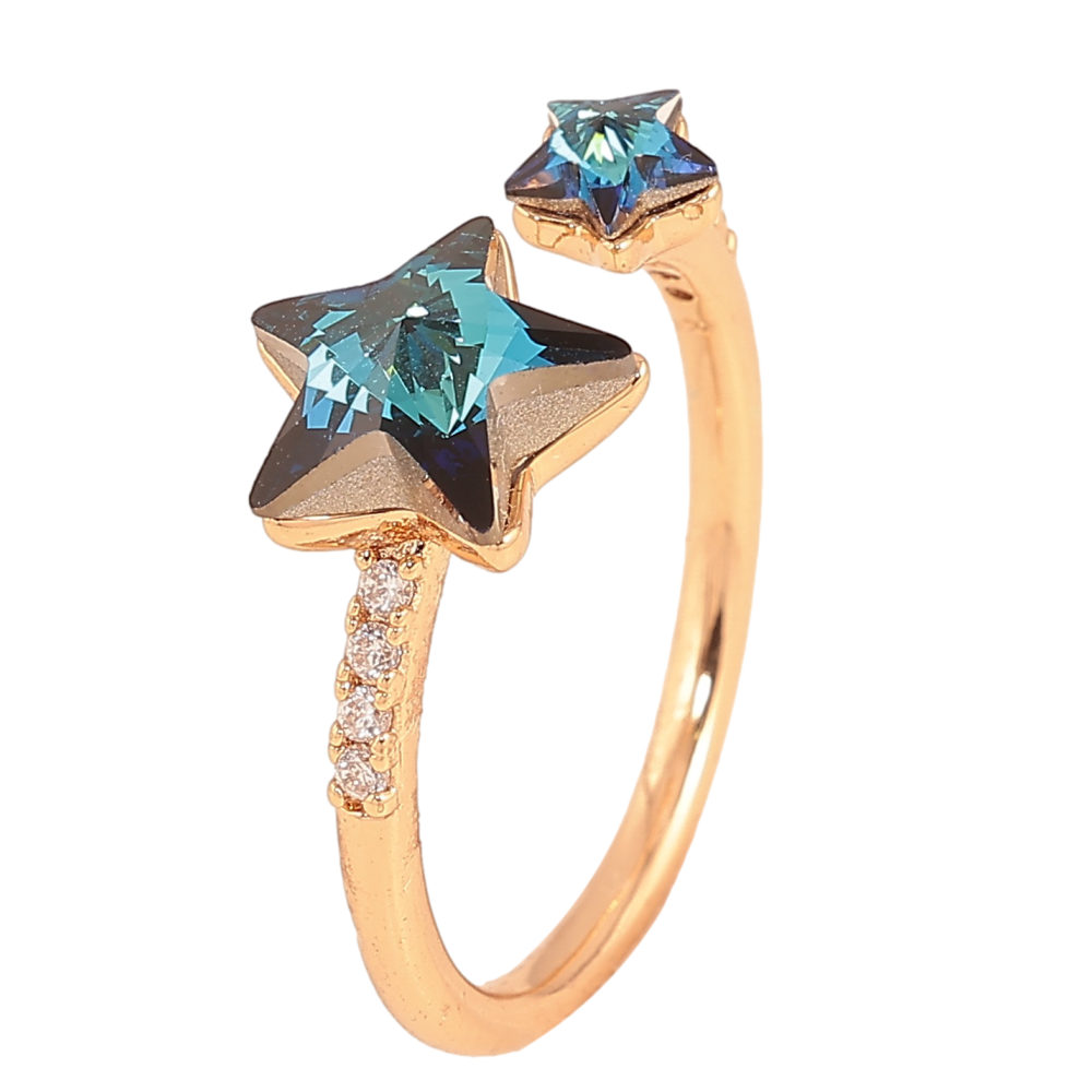 Каблучка Xuping колір Позолота 18K з кр-ми Swarovski "Дві кристальні зірки Metallic Blue"