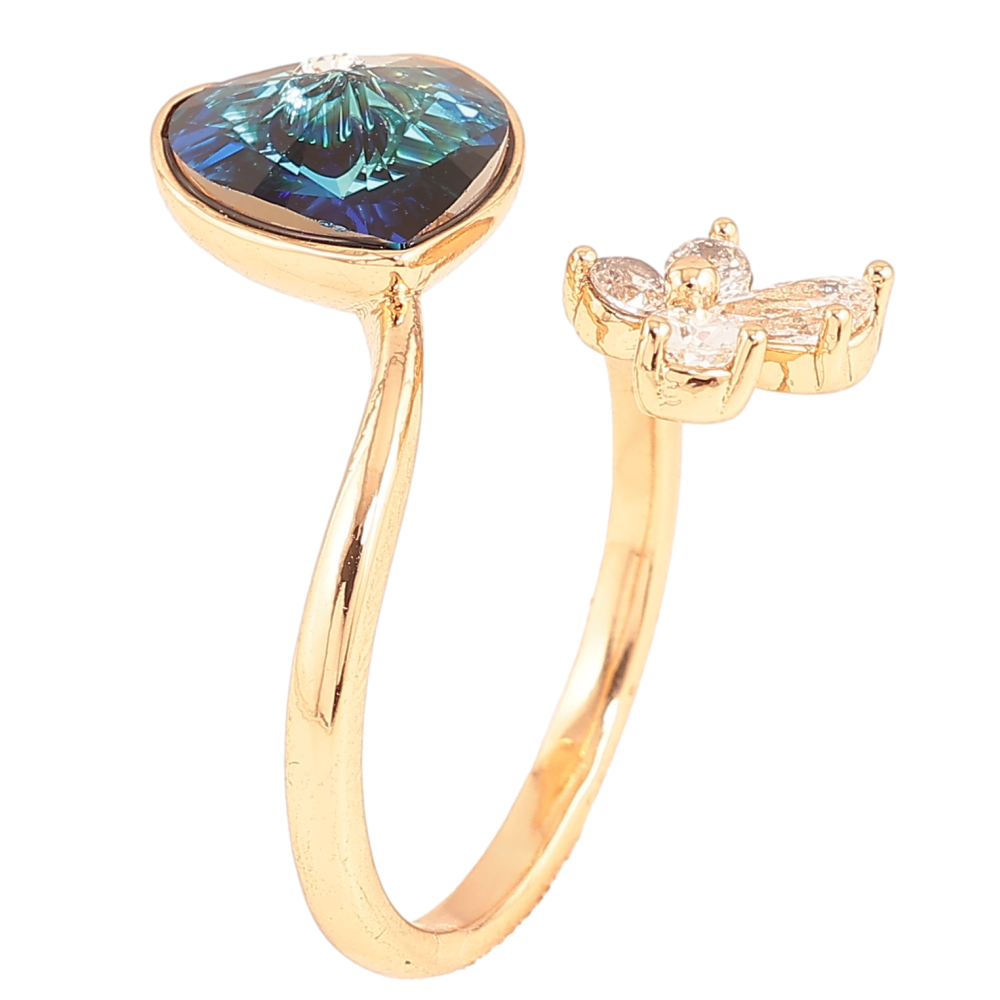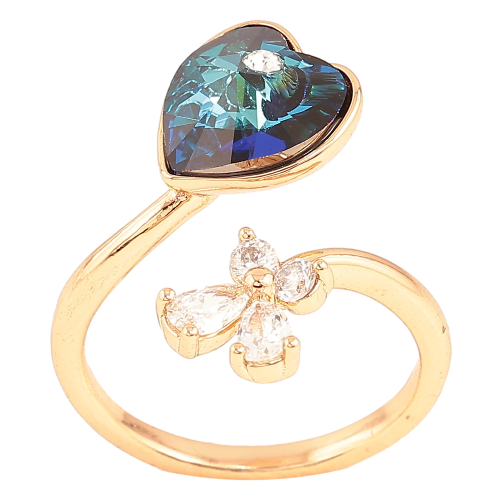 Каблучка Xuping колір Позолота 18K з кр-ми Swarovski "Кристальне серце Metallic Blue з квіточкою"
