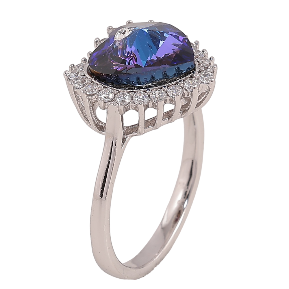 Каблучка Xuping колір Родій із кристалами Swarovski "Серце Bermuda Blue в обрамленні"
