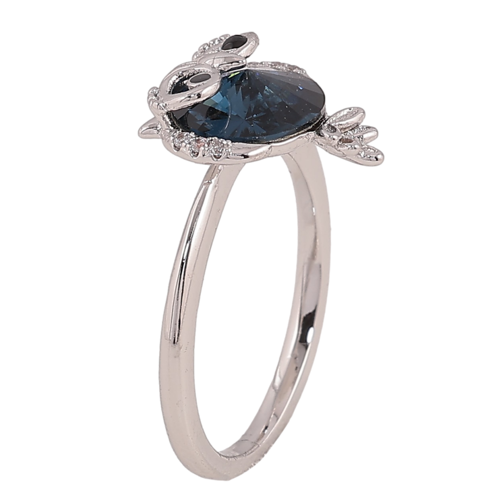 Каблучка Xuping колір Родій із кристалами Swarovski "Сова з кристалом Montana"